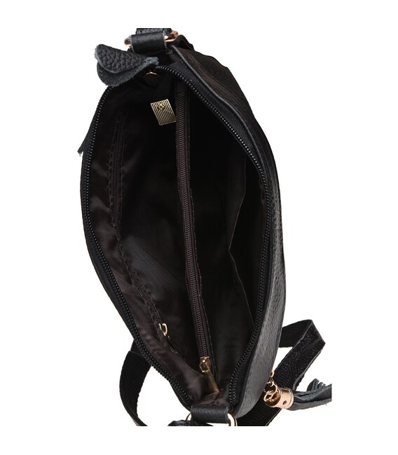 Данная модель женской сумки закрывается на молнию, имеет 3 отделения внутри и 2 кармана на молнии. Снаружи- 2 кармана на молнии. Подкладка-текстиль. Плечевой ремень регулируется по длине.