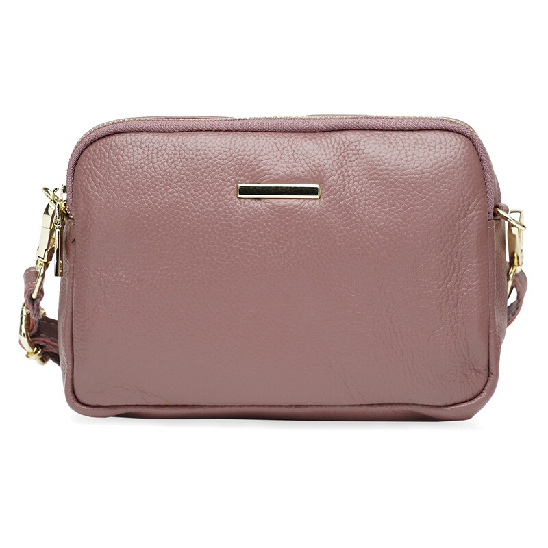 Небольшая и вместительная женская сумочка из натуральной кожи. Сумку можно носить через плечо или как клатч в руках. Имеет 2 отделения на молниях. Внутри 2 кармана на молниях. Подкладка -текстиль. Цвет фурнитуры- золото. Съемный плечевой ремень регулируется по длине.