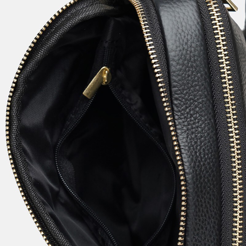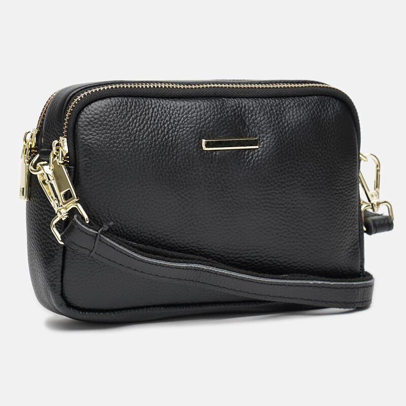 Небольшая и вместительная женская сумочка из натуральной кожи. Сумку можно носить через плечо или как клатч в руках. Имеет 2 отделения на молниях. Внутри 2 кармана на молниях. Подкладка -текстиль. Цвет фурнитуры- золото. Съемный плечевой ремень регулируется по длине.