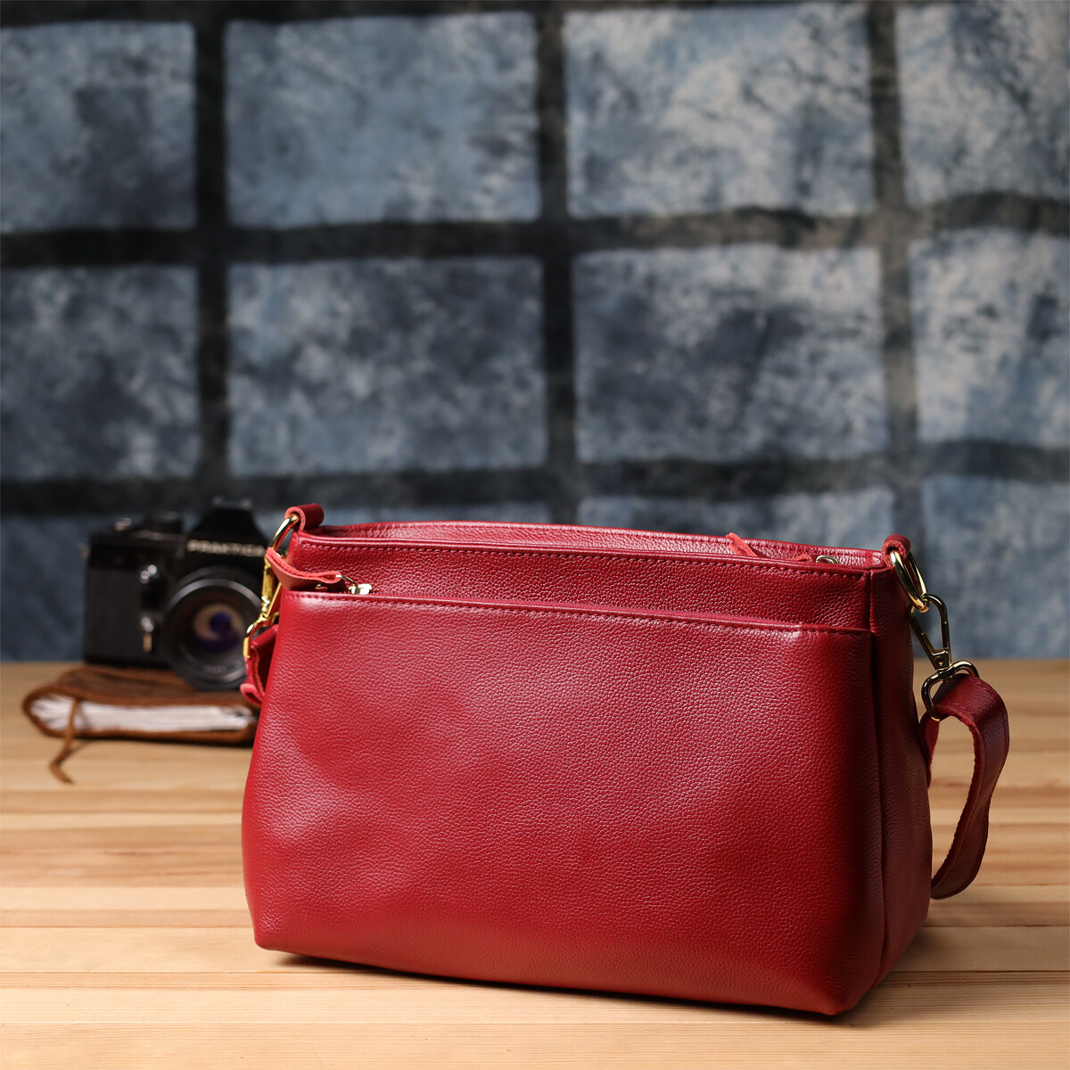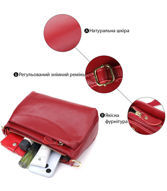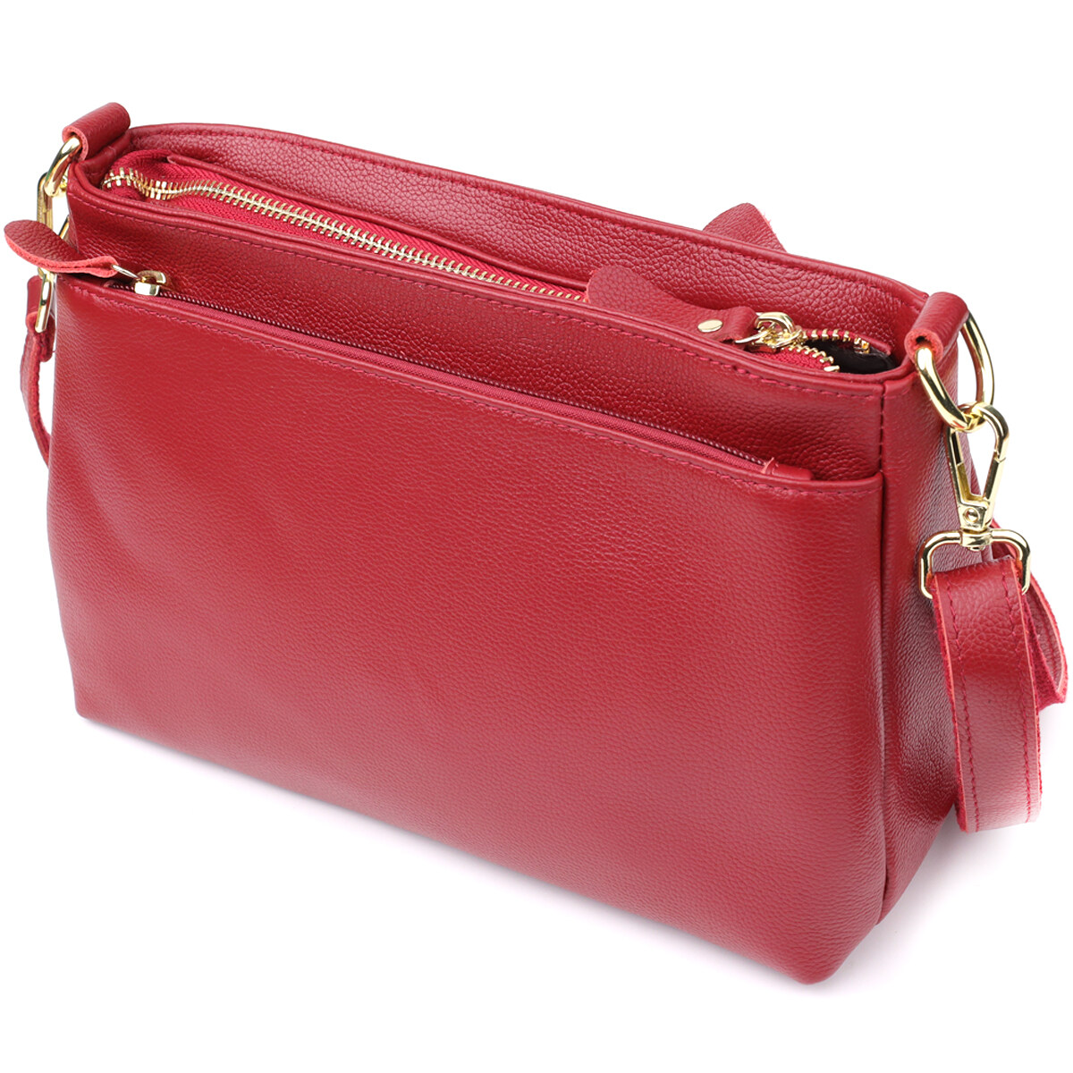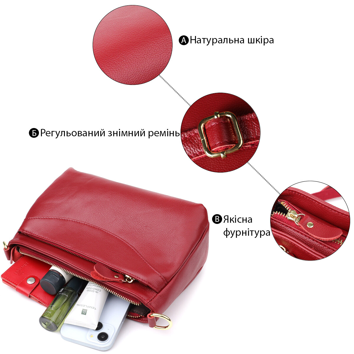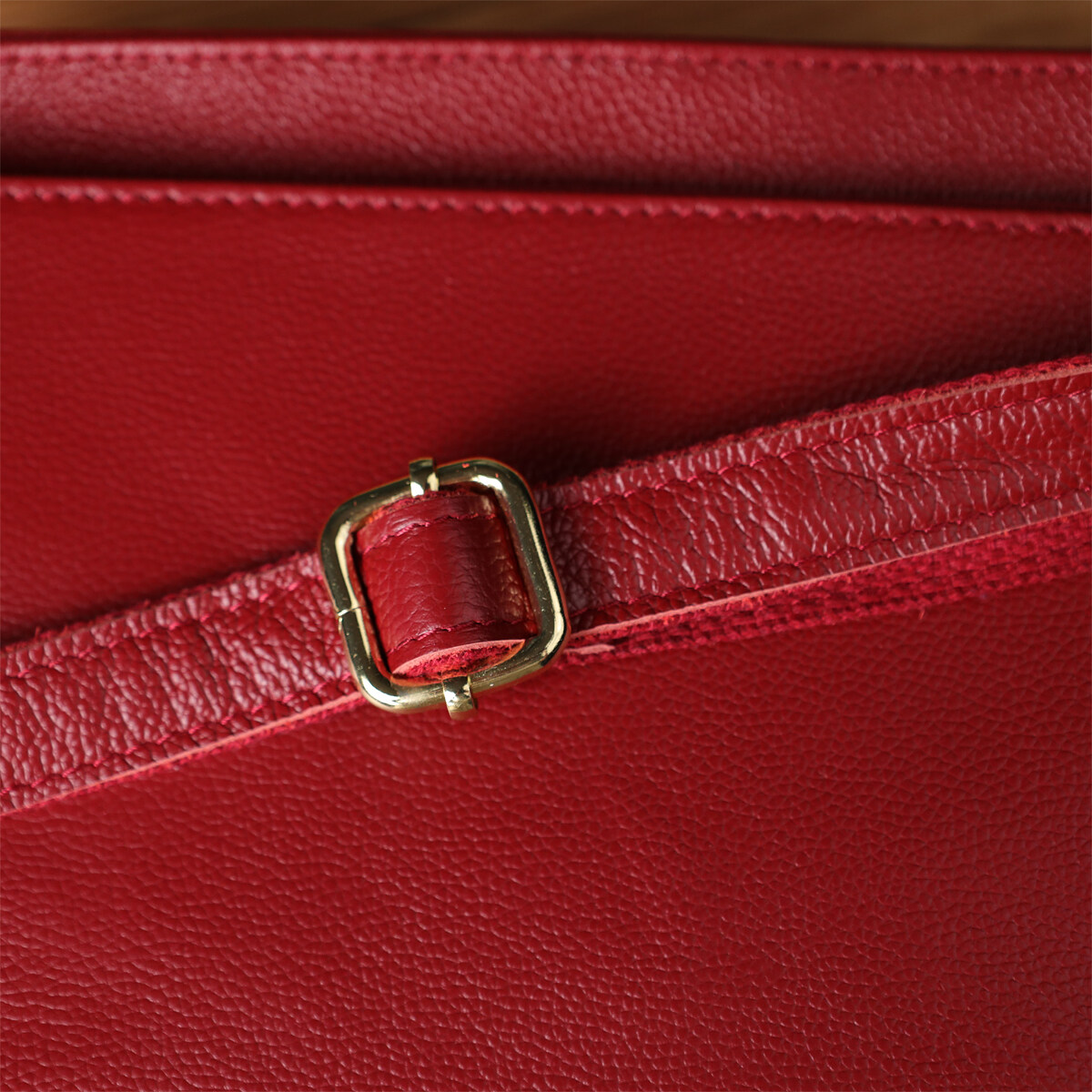 Эта красная кожаная сумка — отличный выбор для женщин, которые ценят сочетание стильного дизайна, удобства и высокого качества.