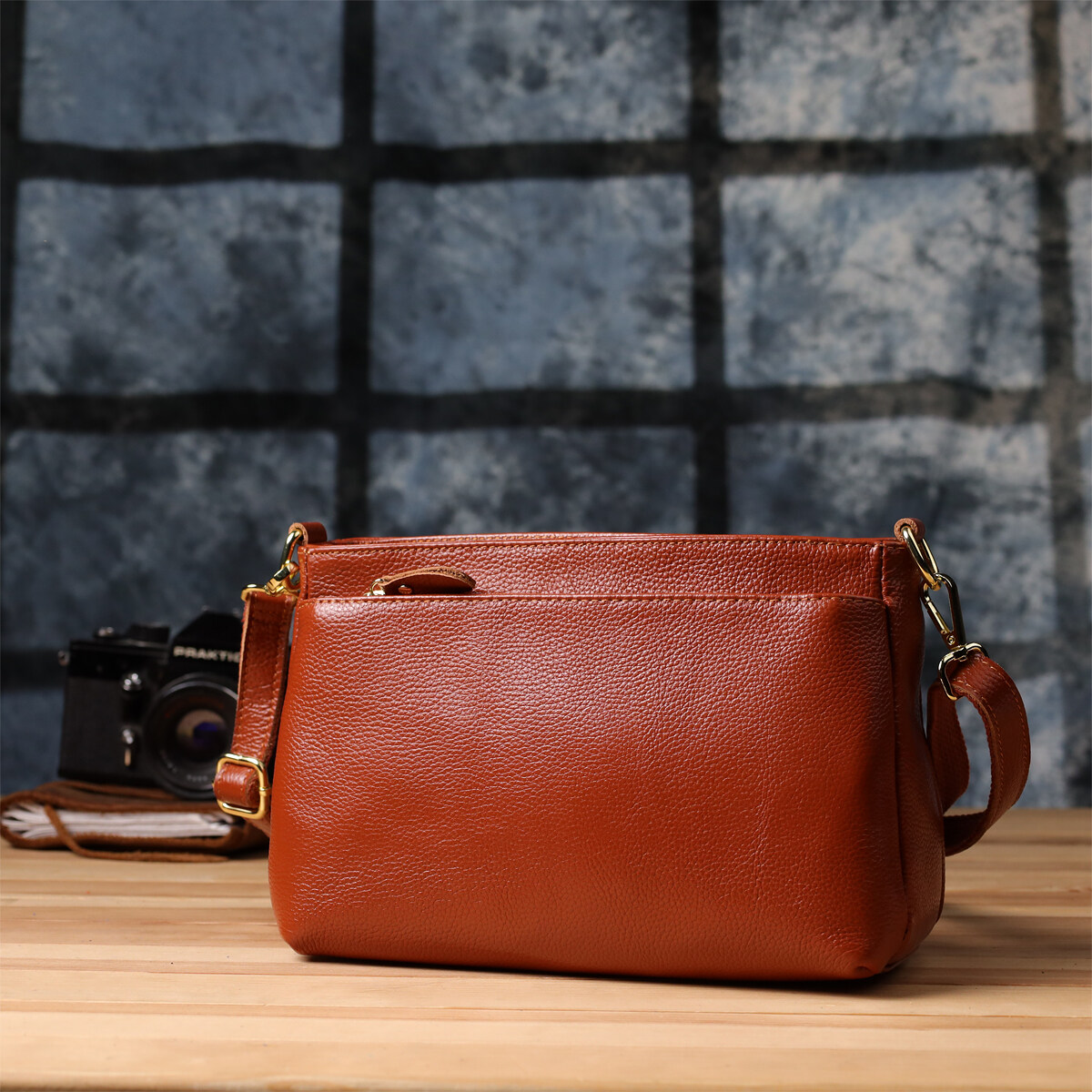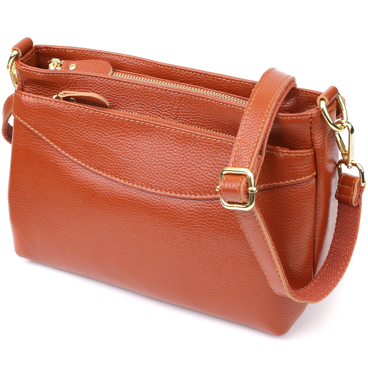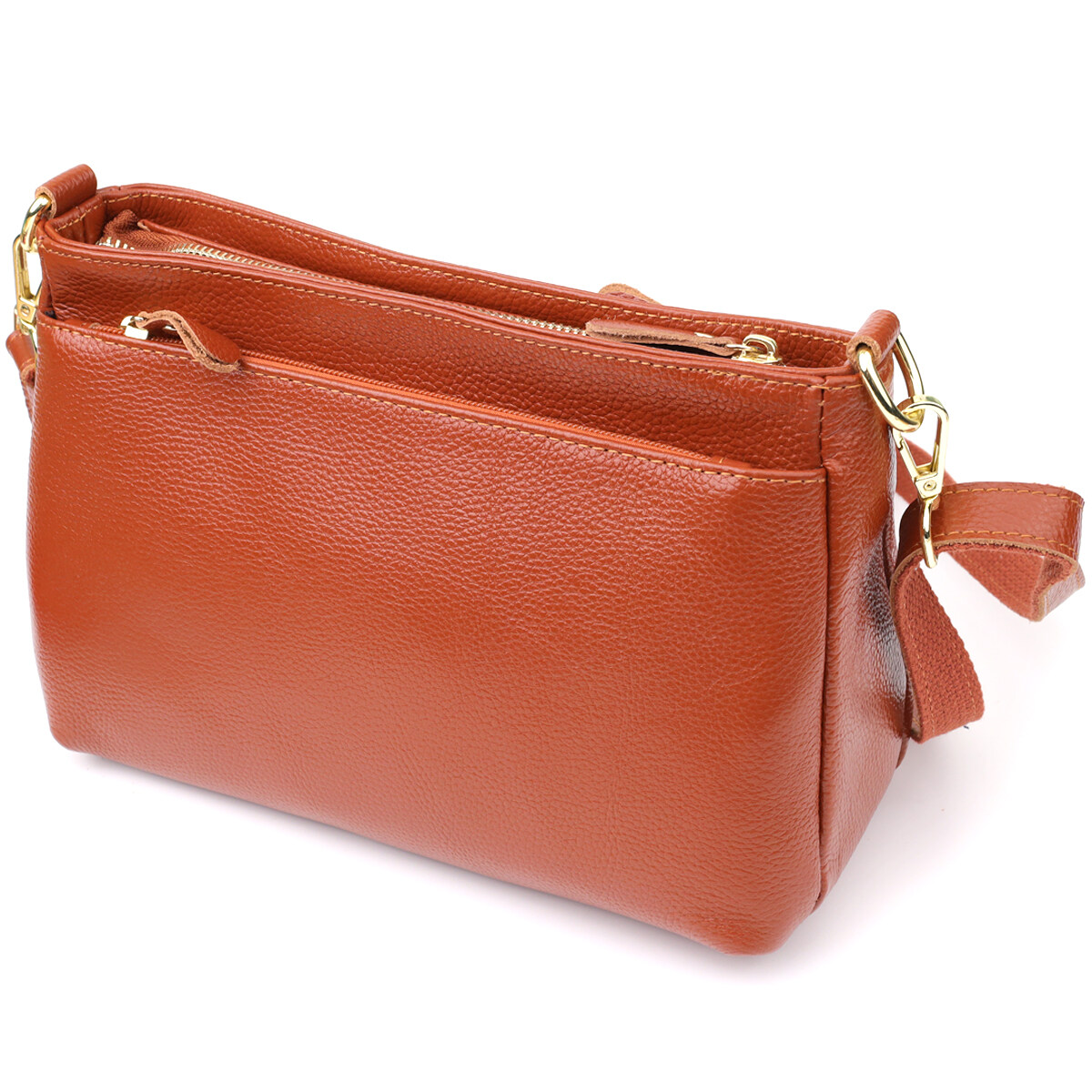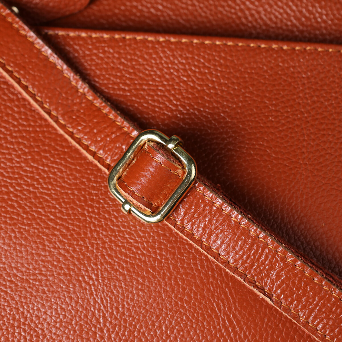 Фурнитура в цвете жёлтого золота гармонично дополняет тёплый оттенок коричневой кожи, придавая сумке изысканный и стильный вид.