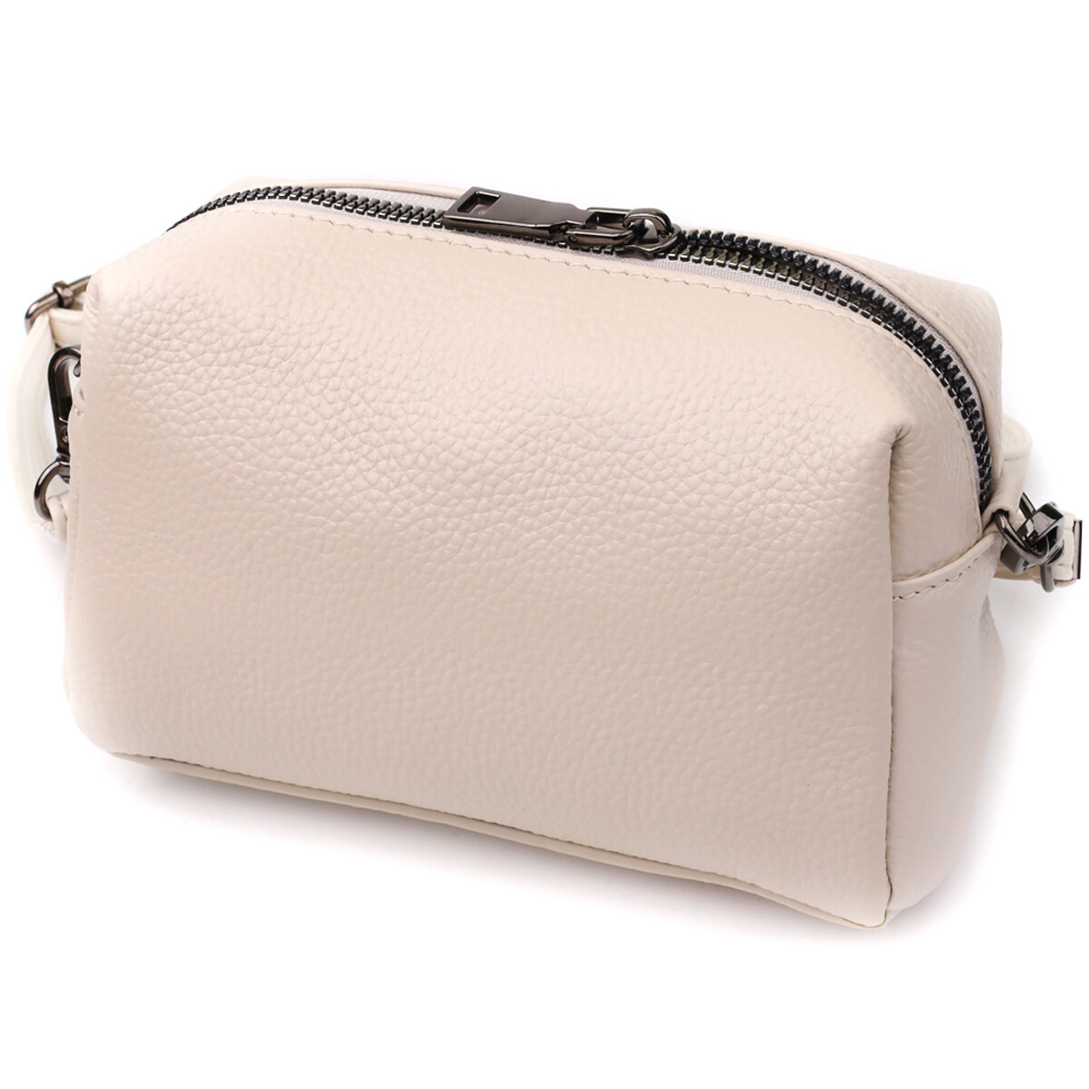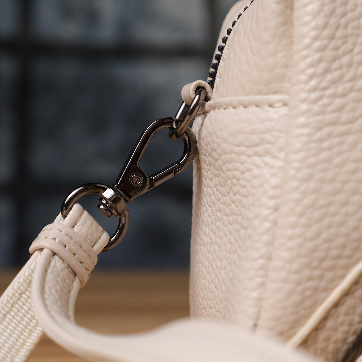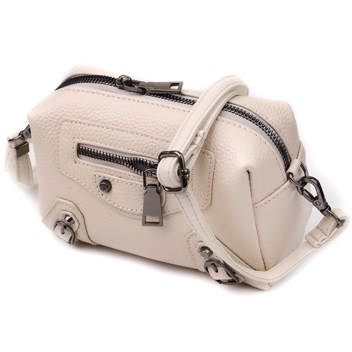 Идеальный выбор для тех, кто ценит смелые акценты и практичный формат — белая кожаная сумка с декоративной отделкой станет выразительной деталью в любом образе, от casual до городского шика.