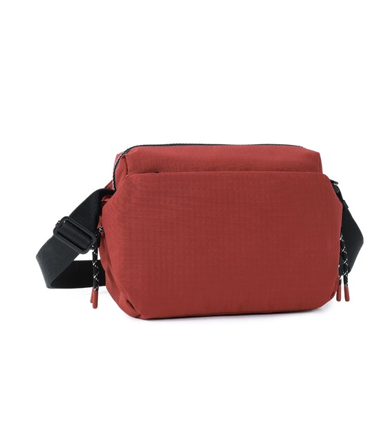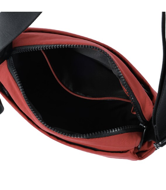 Удобная, компактная сумка, срефднего размера изготовлена из переработанной ткани. Оснащена основным отделением на молнии с отделом для смартфона и дополнительным карманом на молнии. Снаружи оснащена карманами по бокам, для предметов первой необходимости. На заднем кармане изделия предусмотрена утопленная молния, плотно прилегающая к телу, как дополнительное средство безопасности. Также, при необходимости сумка расширяется и имеет боковые карманы для бутылки/зонтики. Сумку можно носить через плечо благодаря регулируемому, съемному ремню.