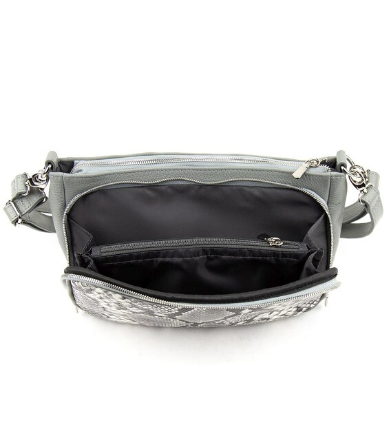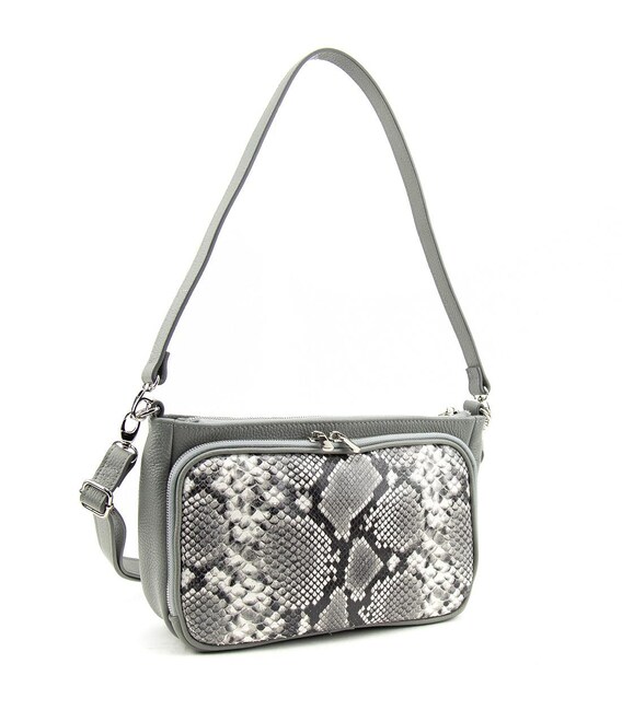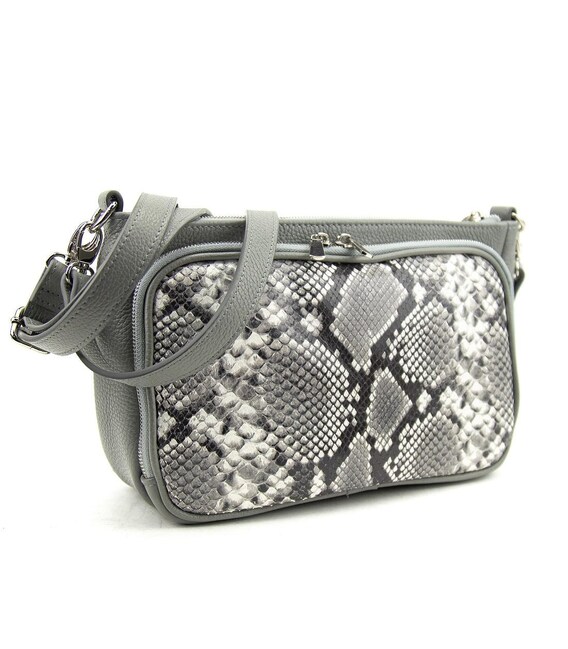 Кожаная женская кроссбоди с отделкой питон Tavinchi CH-001G-R Особенности:Размер 28 x 19 x 10Материал: премиальная натуральная кожа Сумка имеет одно основное отделение, которое закрывается на молнию.В комплекте длинный кожаный наплечный ремешок, который регулируется по длине и крепится с помощью карабинов.Подкладка: текстильная Цвет серый Цвет фурнитуры: сереброНашли эту модель дешевле? Свяжитесь с нами, и мы предложим Вам самую низкую цену в Украине, потому что являемся производителем этого товара.