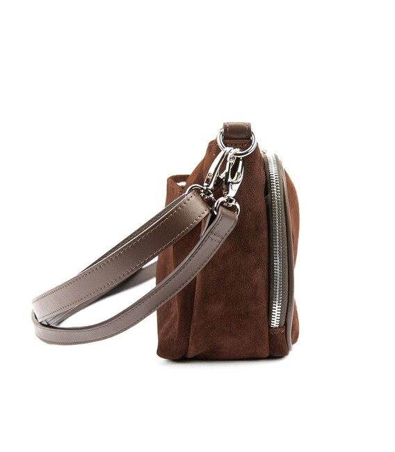 Сумка женская кроссбоди через плечо из натуральной замши.Особенности: Размер 28 x 19 x 10Материал: премиальная натуральная замша Сумка имеет одно основное отделение, закрывающееся на молнию. В комплекте длинный кожаный наплечный ремешок, который регулируется по длине и крепится с помощью карабинов.Подкладка: текстильная Цвет темно-коричневый Цвет фурнитуры: бронза Нашли эту модель дешевле? Свяжитесь с нами, и мы предложим Вам самую низкую цену в Украине, так как являемся производителем данного товара.
