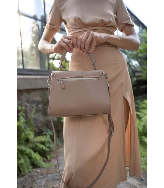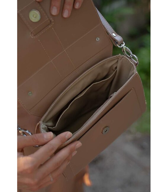 Размер : 26(23)х20х12(6) см Материал : кожа, подкладка из плотной ткани Внутри : одно отделение, три больших кармана и карман на молнии Снаружи : один карман на молнии, один карман без молнии, ручка Фурнитура : металлическая Шлейка : длинная шлейка 3х140 см для носки через плечо