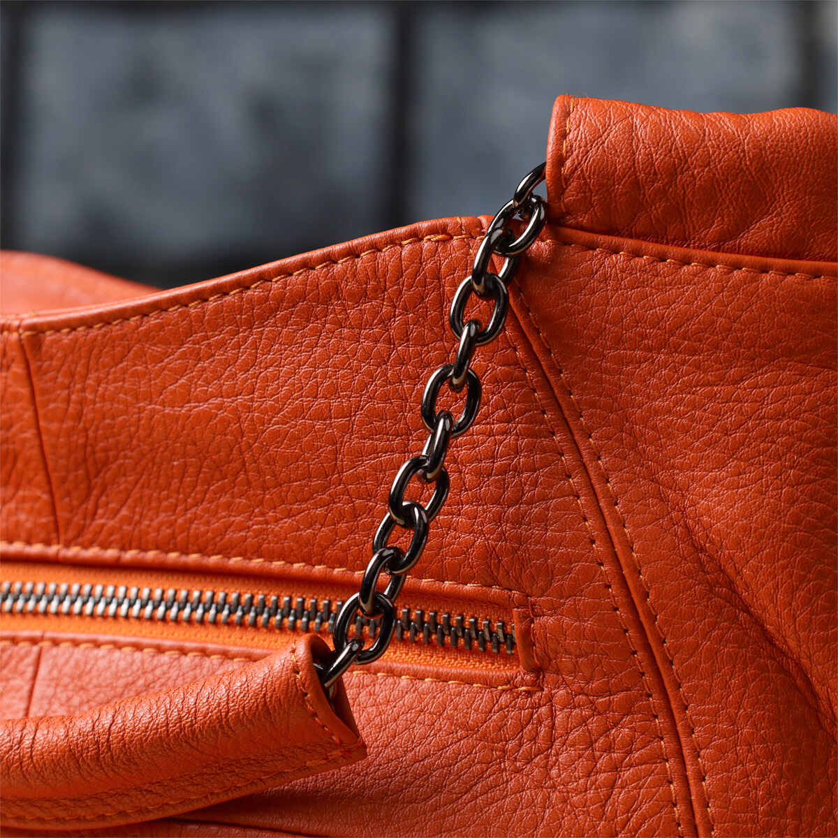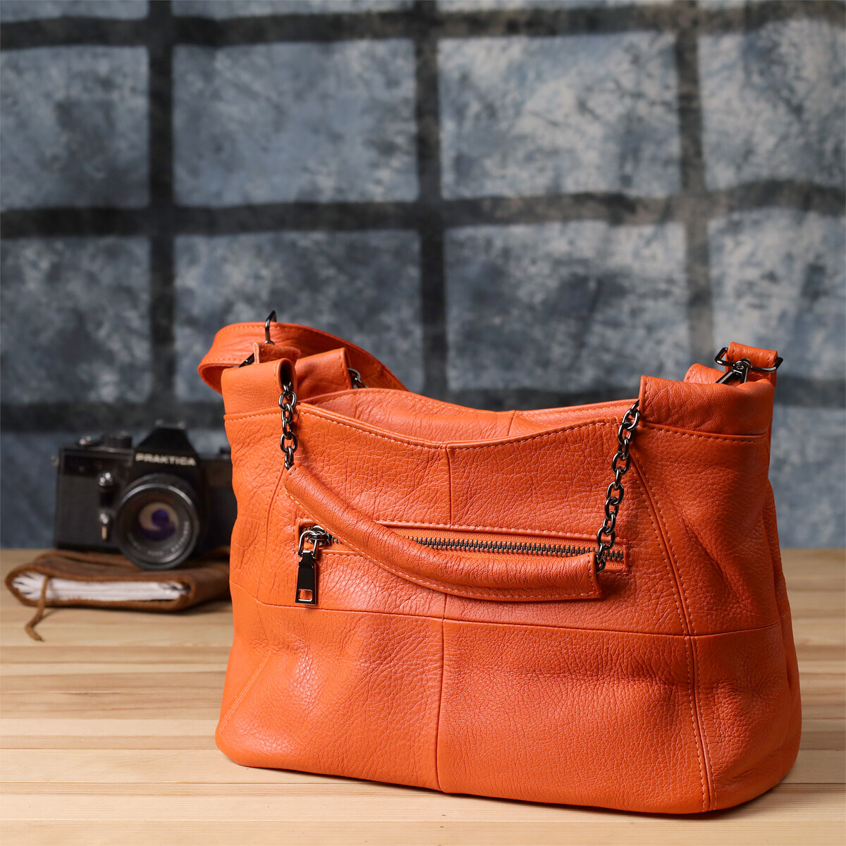 Эта оранжевая кожаная сумка от бренда Vintage — идеальный выбор для женщин, которые любят яркие решения без компромиссов в удобстве и качестве.
