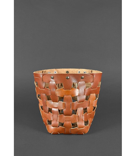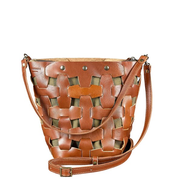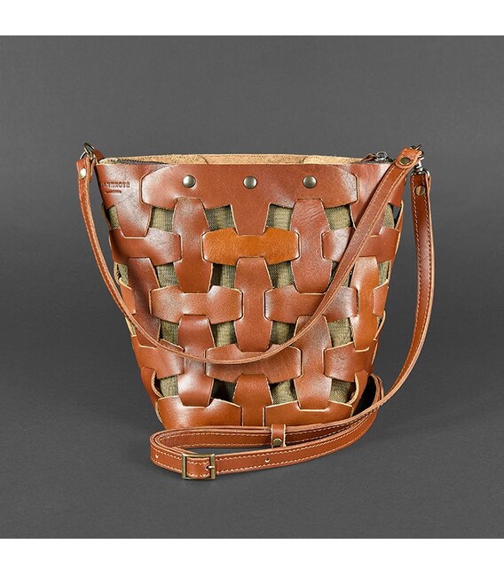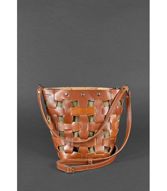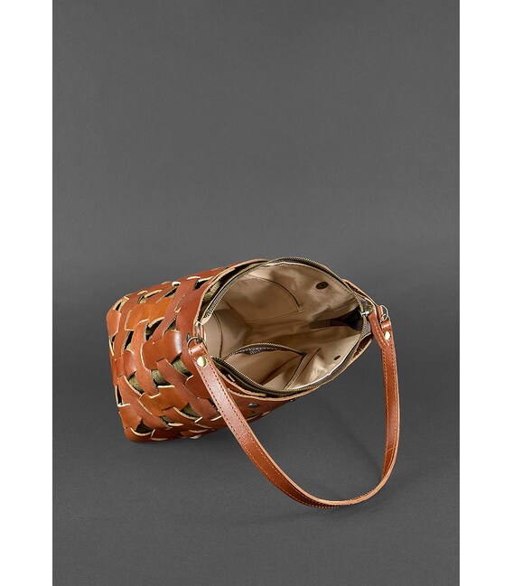 Описание Кожаная плетеная женская сумка Пазл M светло-коричневая Krast