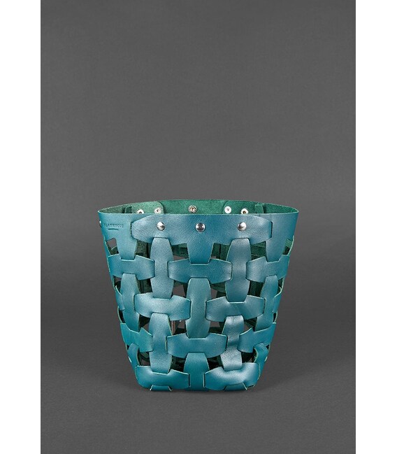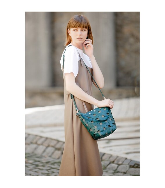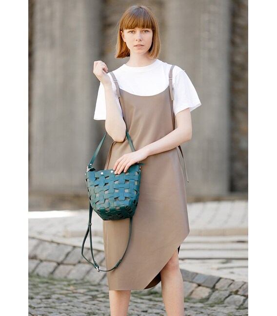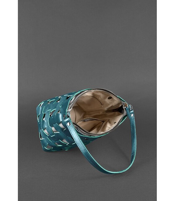 Описание Кожаная плетеная женская сумка Пазл M зеленая Krast