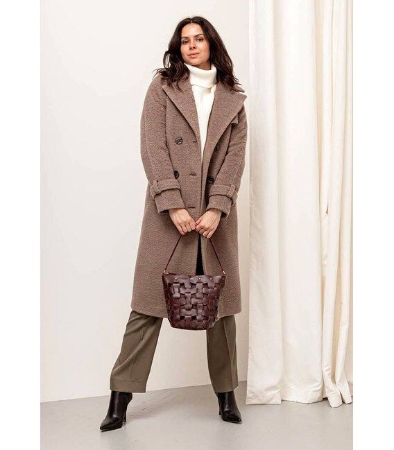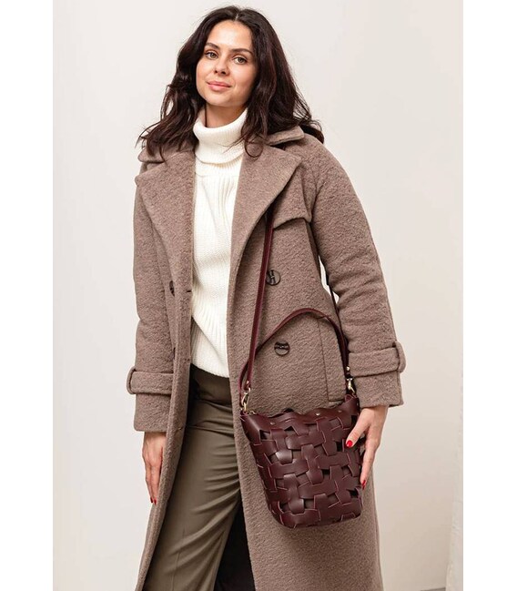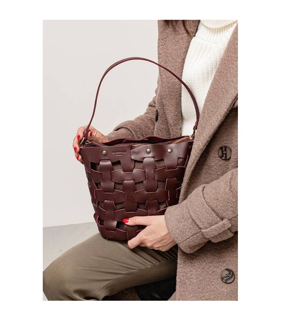 Описание Кожаная плетеная женская сумка Пазл M бордовая Krast