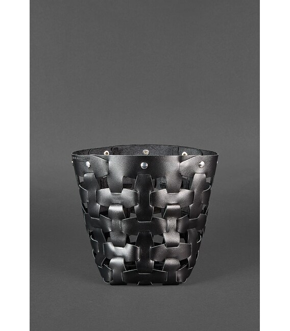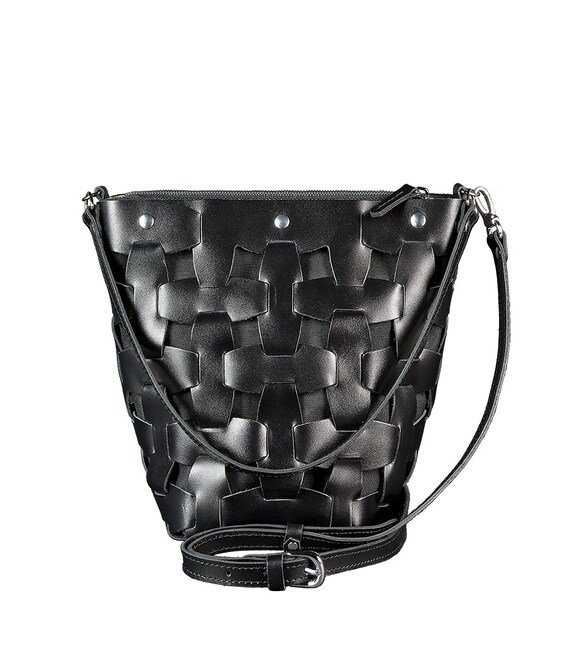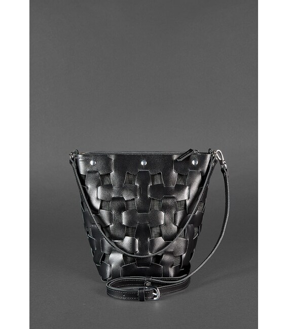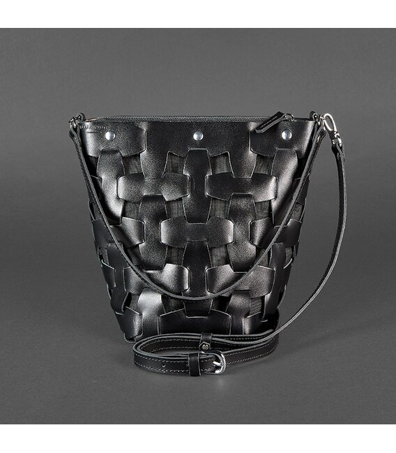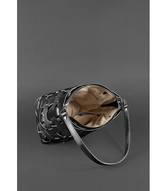 Описание Кожаная плетеная женская сумка Пазл M угольно-черная