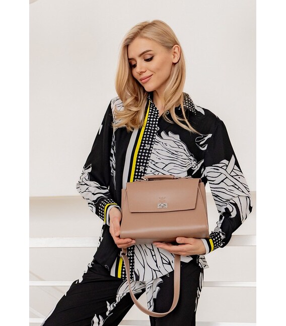 Размер: 22х29х11 смМатериал: кожа, тканевый подкладЗастегивается на молнию и поворотный замокОснащена: внешним карманом на молнии и внутренним карманом для мелочейВ комплекте: съемная регулируемая шлейка через плечоФурнитура: металлическая, цвет никель, молния – пластик (YKK)