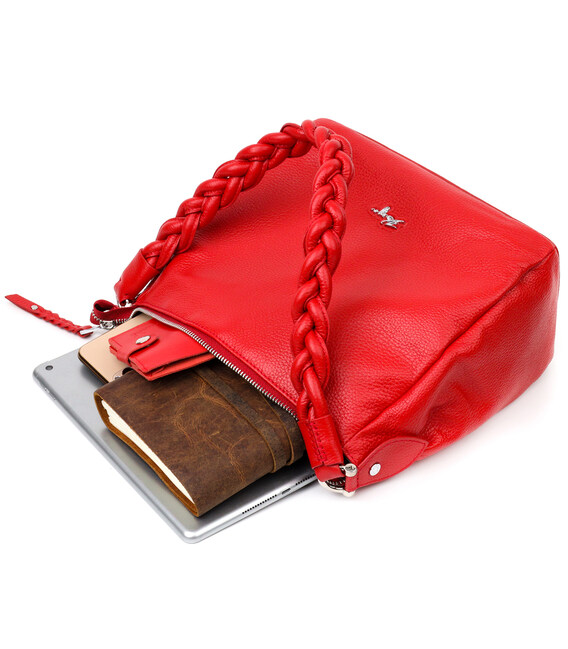 Привлекательная женская сумка из мелкозернистой натуральной кожи, в красном цвете. Сумка функциональна и удобна в эксплуатации, качественная фурнитура не только дополняет стильный дизайн сумки, но и защищает изделие. Изделие имеет прочную подкладку. Аксессуар упакован в фирменный текстильный мешок Karya. Сумка из натуральной кожи всегда будет отличным подарком любой женщине.
