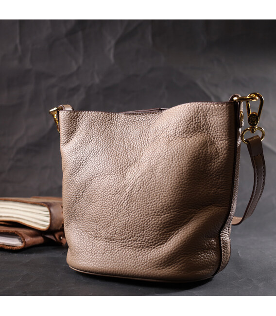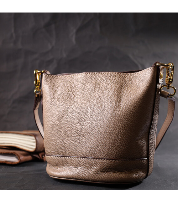 Описание Женская сумка с автономной косметичкой внутри из натуральной кожи Vintage 22364 Бежевая