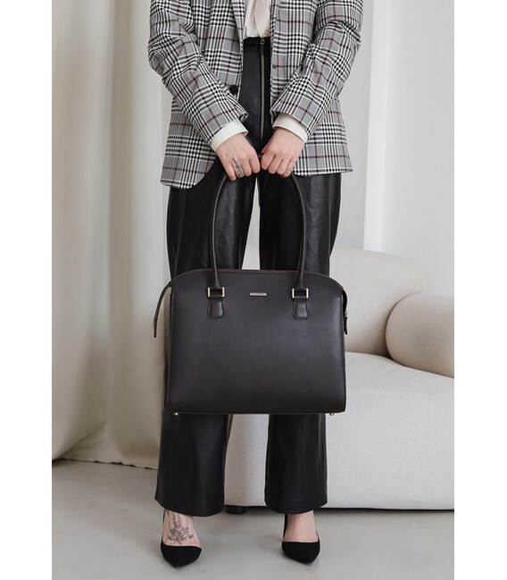 Описание Женская кожаная сумка Business темно-коричневая Краст