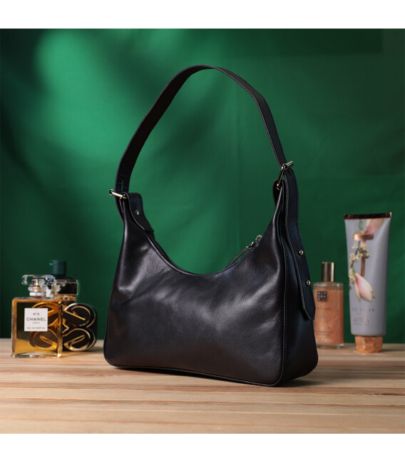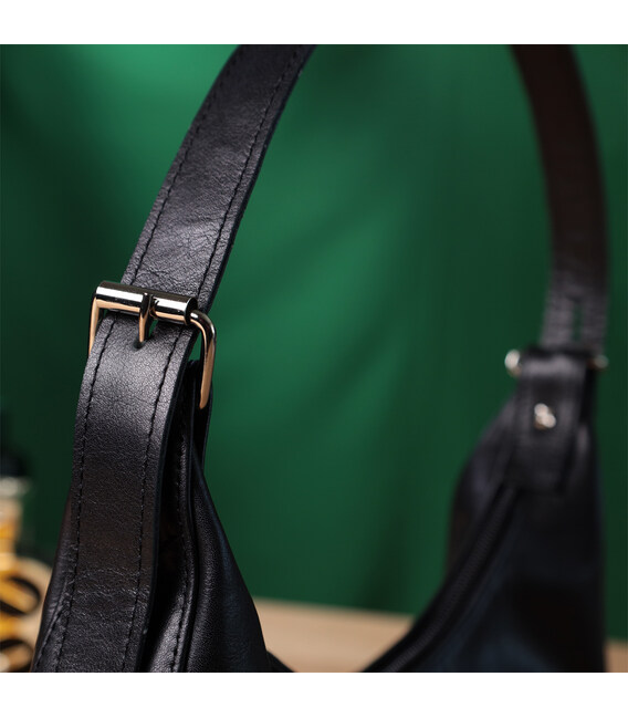 Описание Женская сумка багет с регулируемым ремнем из гладкой натуральной кожи Shvigel 22834 Черная