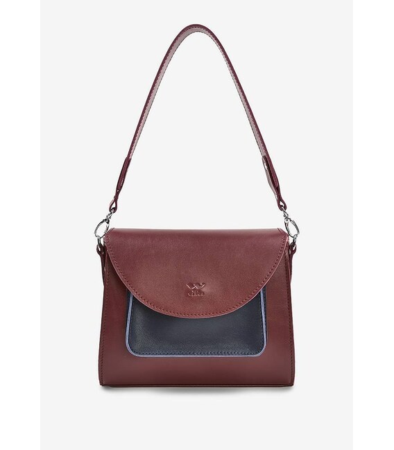 Описание Женская кожаная сумка Liv бордово-синяя краст