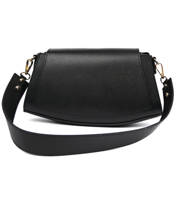 Жіноча шкіряна сумка Firenze (Італія) fz209805 чорна Сумка йде в комплекті зі шкіряними ременями: тонким ременем з регулюванням довжини і широким ременем фіксованої довжини. Всередині бежева тканинна підкладка. Вся фурнітура – металева. Розміри сумки 30*16*7 см