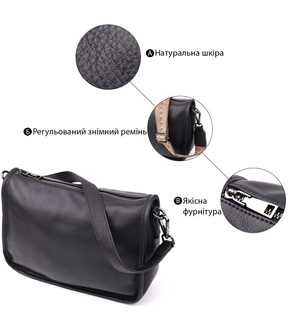 Описание Сумка на плечо из натуральной кожи для женщин Vintage 23001 Черный
