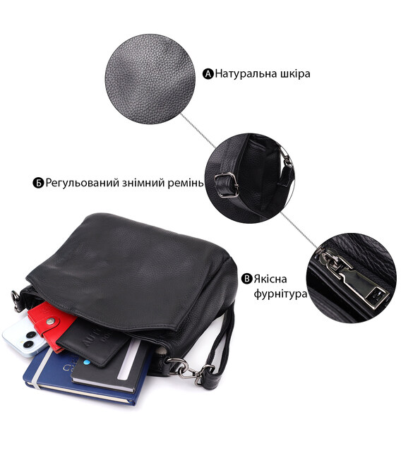 Описание Сумка на плечо из натуральной кожи для женщин Vintage 23007 Черный