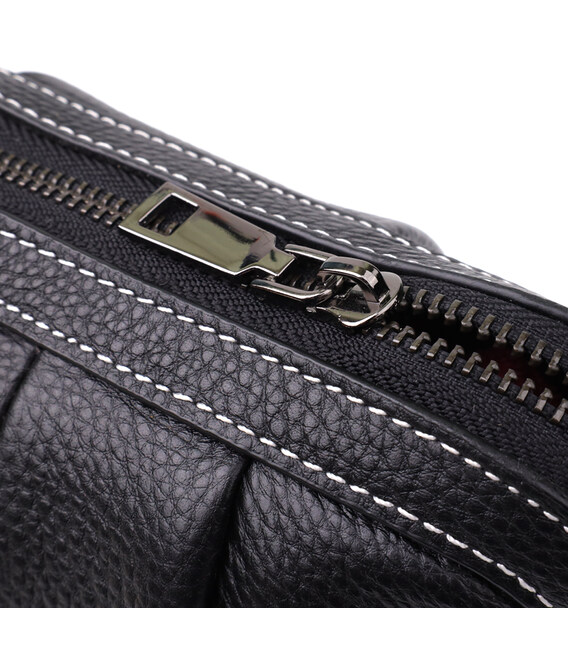 По краям сумка декорирована контрастной белой строчкой, добавляющей изюминку в сдержанный образ. Металлическая фурнитура тёмного серебра элегантно подчёркивает общий стиль изделия. В комплект входят два съёмных кожаных ремешка, благодаря которым вы можете носить сумку на плече, через плечо или в руке — в зависимости от настроения и ситуации.