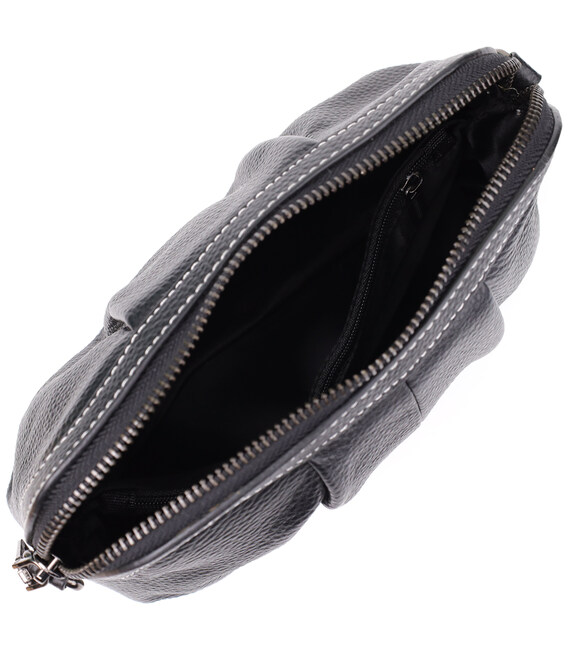Сумка оснащена одним основным отделением, которое закрывается на молнию. Внутри — продуманная организация: потайной карман на молнии для ценных вещей, открытый карман для мелочей и удобный карман-перегородка на молнии, который делит внутреннее пространство, обеспечивая порядок и лёгкий доступ ко всему необходимому.