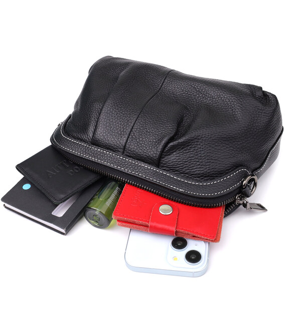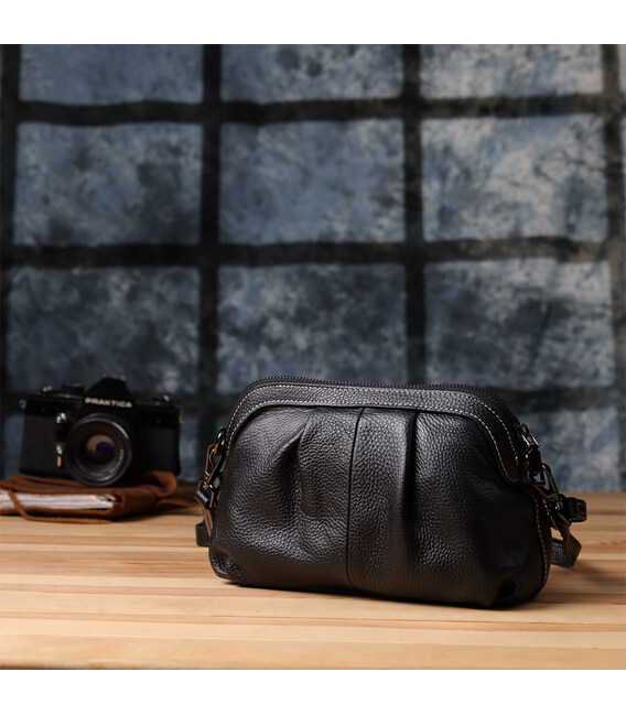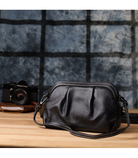 Описание Женская сумка из мягкой натуральной кожи с акцентом на драпировку Vintage 22896 Черный