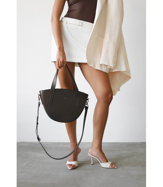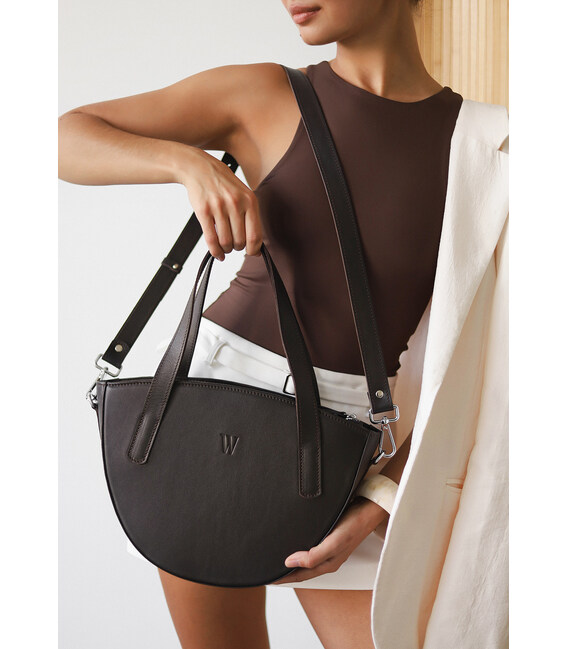 Тёмно-коричневая сумка Bella — это не просто аксессуар, а воплощение безупречного стиля и уверенности. Её насыщенный шоколадный оттенок напоминает ароматный утренний кофе, а мягкие линии полукруглой формы придают образу гармоничность и женственность.Эта сумка создана, чтобы сопровождать вас в любой день и при любом настроении — от деловых встреч до вечерних прогулок. Короткие ручки позволяют носить её в руке или на плече, а съёмный длинный ремень добавляет свободы — когда хочется лёгкости, просто перекиньте её через плечо.Bella продумана до мелочей: вместительное основное отделение легко вмещает всё необходимое, а внутренние карманы помогают поддерживать идеальный порядок. Центральный карман-перегородка на молнии бережно хранит самое ценное, а внешний карман позволяет быстро достать нужные мелочи — ключи, телефон или билет.Эта сумка — как надёжная спутница: элегантная, прочная и выносливая. Изготовлена из натуральной кожи высокого качества, со временем она лишь раскрывает свой характер, приобретая благородную мягкость и глубину цвета.Гарантия 3 года подтверждает долговечность и уверенность в каждом стежке. Сумка Bella — для женщины, которая ценит детали, комфорт и красоту во всём, что её окружает.