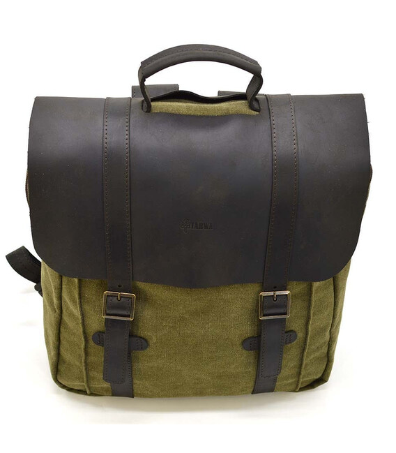 Сумка рюкзак для ноутбука TARWA RCH-3420-3md хаккі з ручкою. Закривається на шкіряний клапан фальш-пряжках - магнітах. Одне відділення на блискавці.