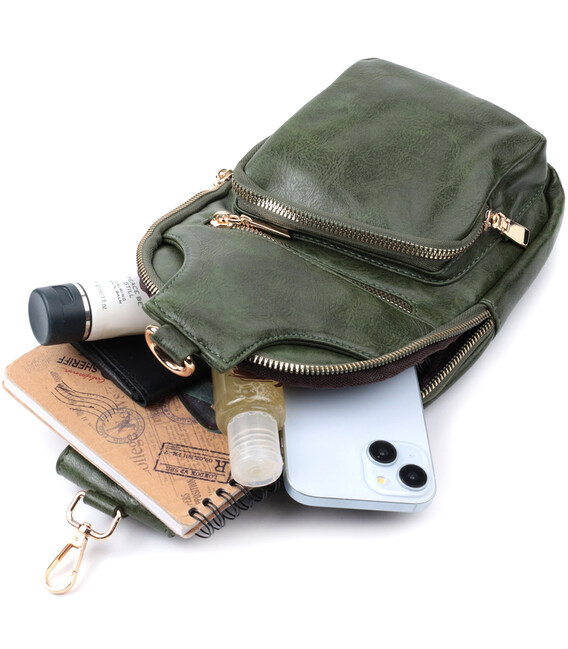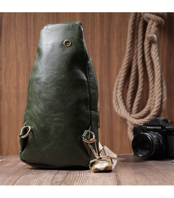 Описание Трендовая женская слинг сумка через плечо из экокожи Vintage 22755 Зеленый