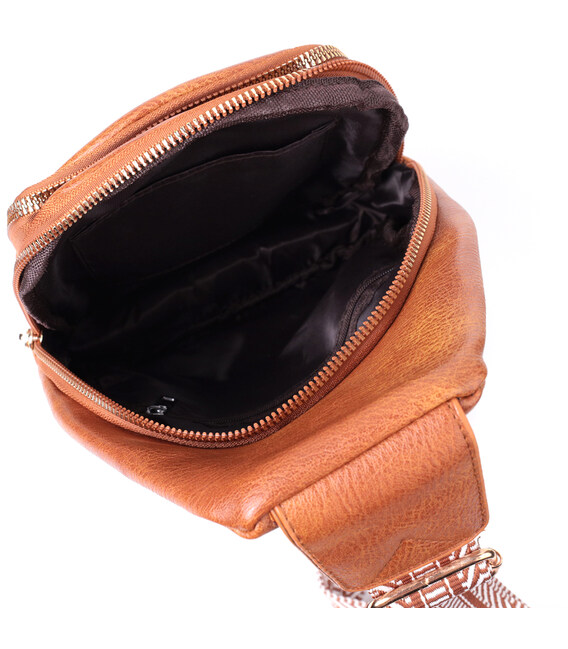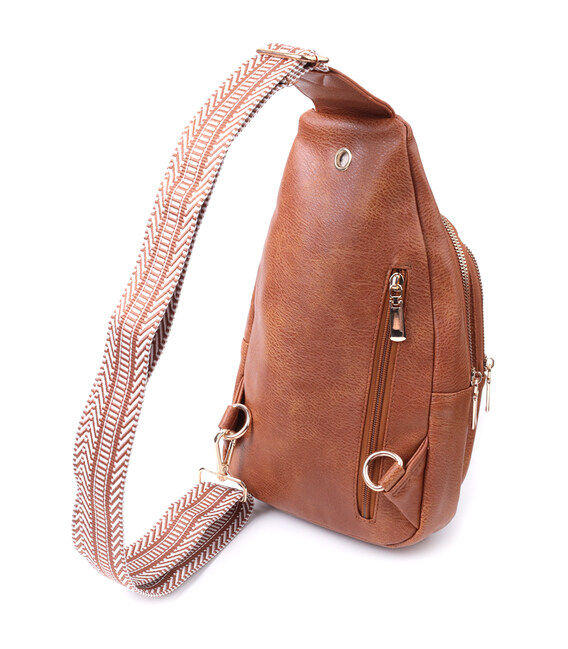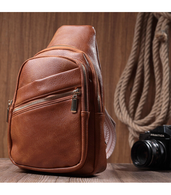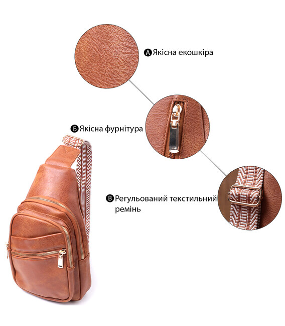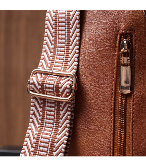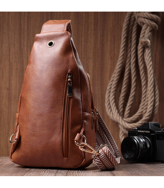 Предлагаем Вашему вниманию удобную слинг сумку из экокожи топового рыжего цвета. Данная модель состоит из одного основного отделения которое закрывается на молнию и в котором находится карман на молнии и карман открытого типа внутри, а также четырех карманов снаружи и одного отверстия для кабеля или наушников, что очень удобно в современной мире. Основной фишкой модели является удобный регулируемый плечевой ремешок в этническом стиле, что очень модно уже несколько сезонов. Экокожа - высококачественная альтернатива натуральному материалу, которая очень устойчива к трению, к низким температурам, отлично носится в отличии от других искусственных материалов, а также имеет гипоаллергенный состав в отличии от натуральной кожи.