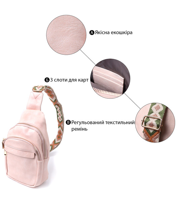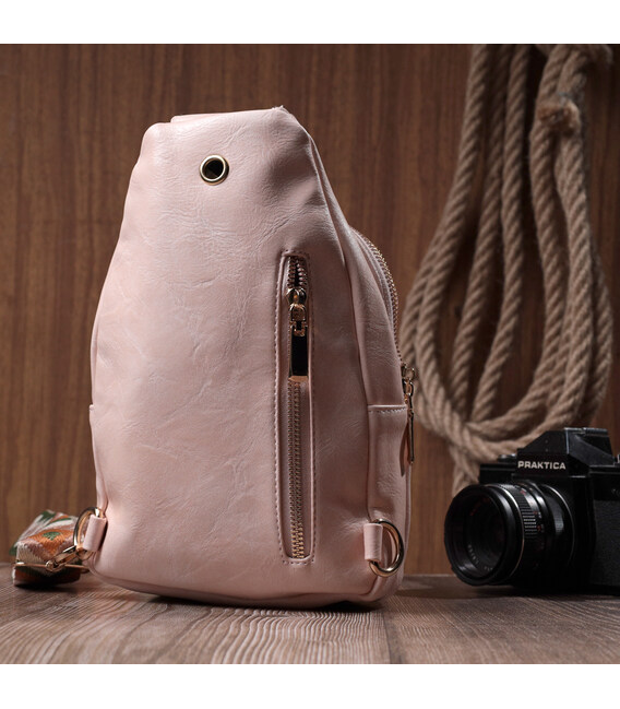 Описание Компактная женская сумка с одной лямкой через плечо из гладкой экокожи Vintage 22766 Розовый