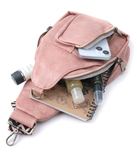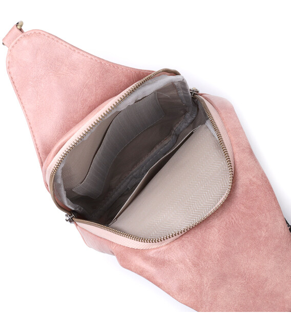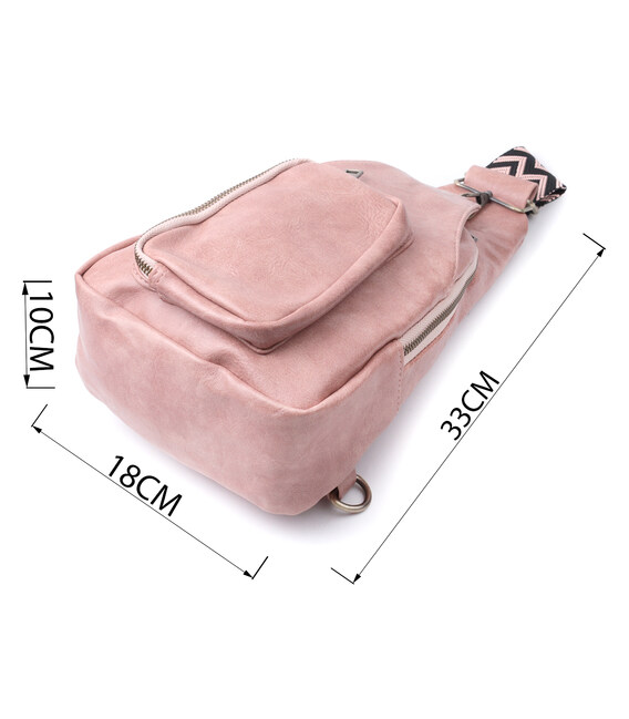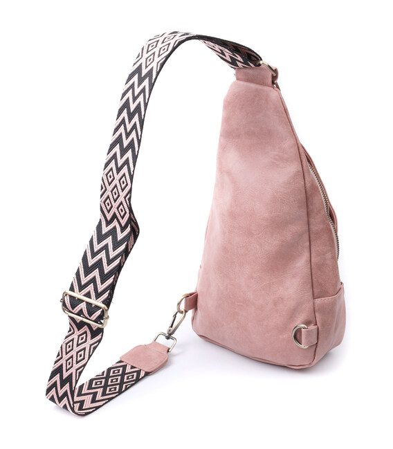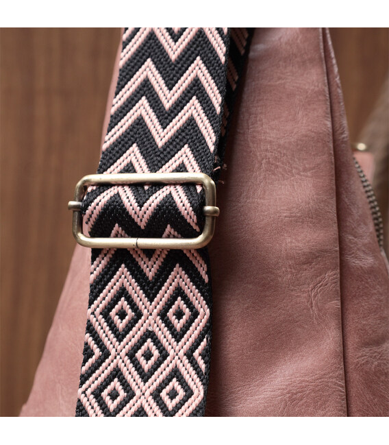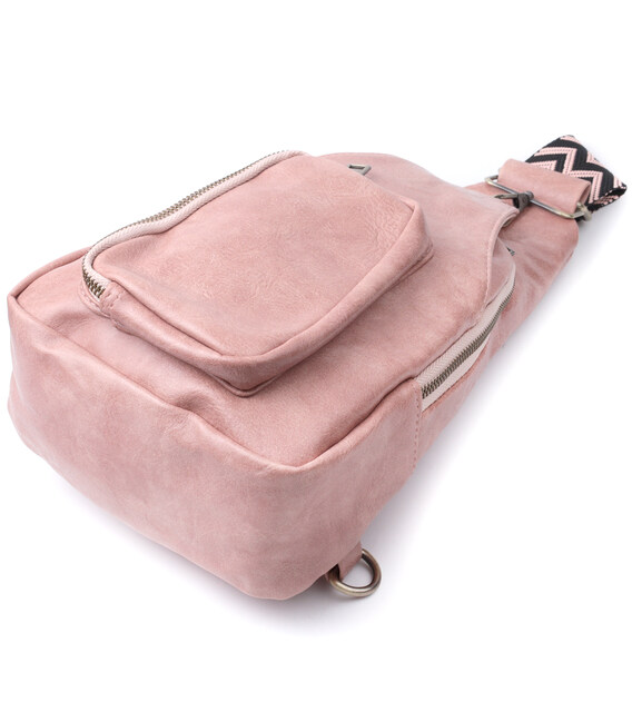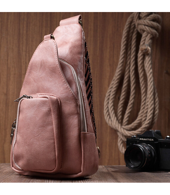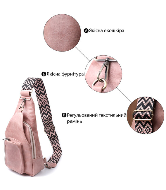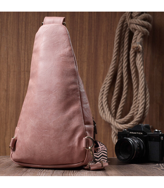 Описание Женская сумка с акцентом на текстильную лямку из гладкой экокожи Vintage 22772 Розовый