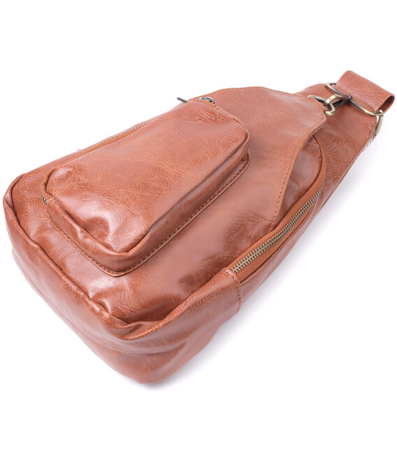 Описание Женская сумка из экокожи с акцентом на текстильную лямку Vintage 22773 Рыжий