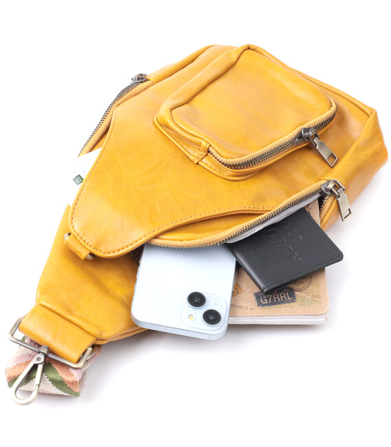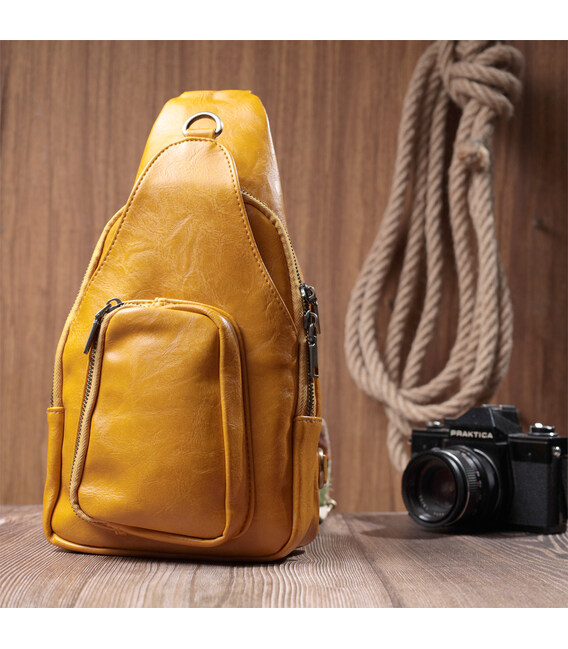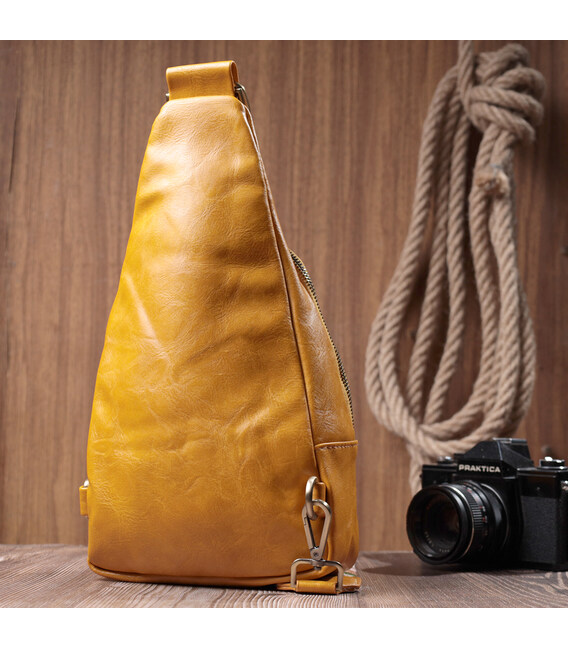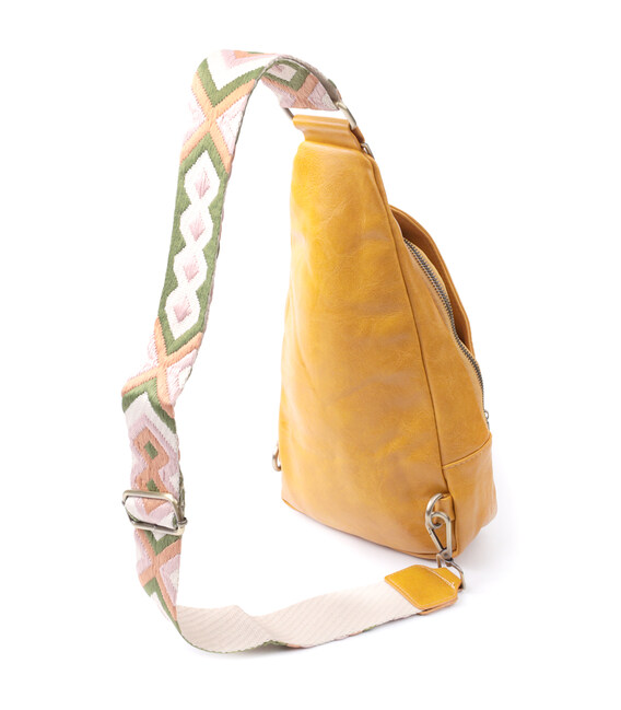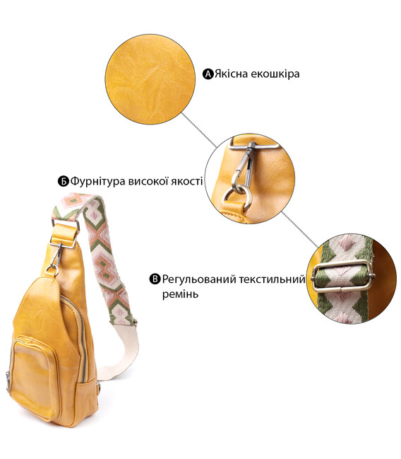 Описание Яркая женская сумка из экокожи с акцентом на текстильную лямку Vintage 22775 Желтый