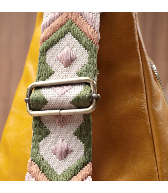 Яркая слинг сумка для женщин из красивой фактурной экокожи. Данная модель состоит из одного основного отделения которое закрывается на молнию и в котором находится два кармана открытого типа внутри, а также двух карманов снаружи и одного отверстия для кабеля или наушников, что очень удобно в современной мире. Акцентом данной модели является удобный регулируемый плечевой ремешок в этническом стиле, что очень модно уже несколько сезонов. Экокожа - высококачественная альтернатива натуральному материалу, которая очень устойчива к трению, к низким температурам, отлично носится в отличии от других искусственных материалов, а также имеет гипоаллергенный состав в отличии от натуральной кожи. Отличный вариант сумки, который порадует любую девушку, так как все вещи под рукой и в безопасности.