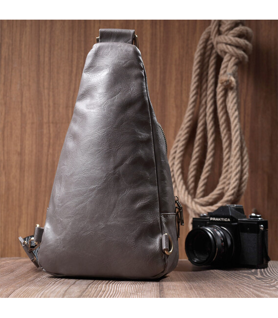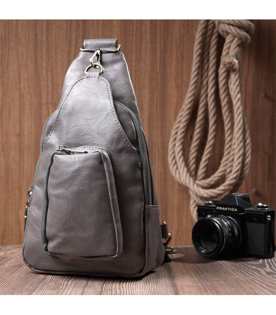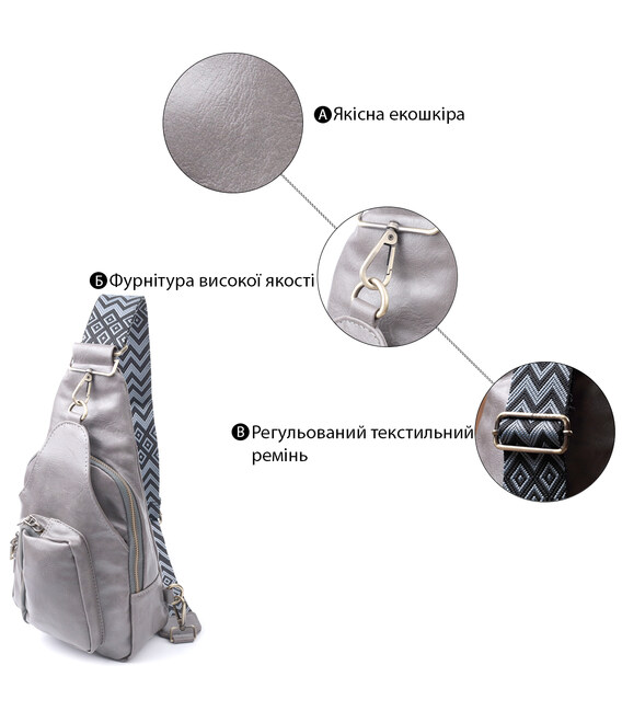 Описание Удобная женская сумка из экокожи с акцентом на текстильную лямку Vintage 22777 Серый