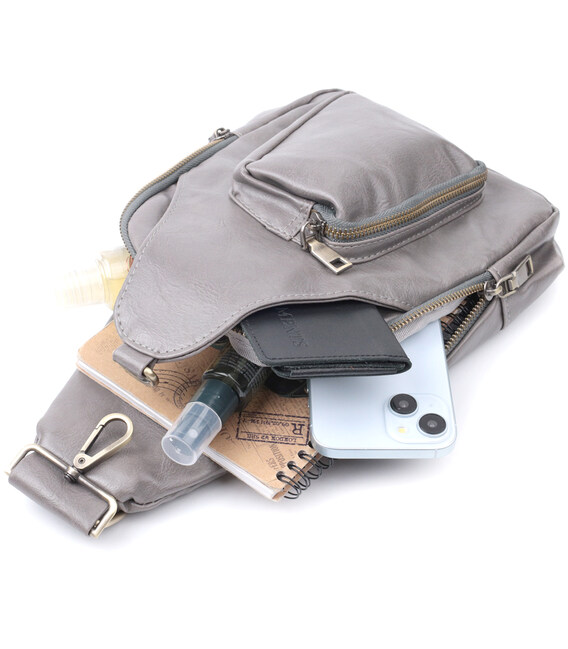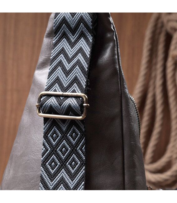 Стильная слинг сумка для женщин из красивой фактурной экокожи. Данная модель состоит из одного основного отделения которое закрывается на молнию и в котором находится два кармана открытого типа внутри, а также двух карманов снаружи и одного отверстия для кабеля или наушников, что очень удобно в современной мире. Акцентом данной модели является удобный регулируемый плечевой ремешок в этническом стиле, что очень модно уже несколько сезонов. Экокожа - высококачественная альтернатива натуральному материалу, которая очень устойчива к трению, к низким температурам, отлично носится в отличии от других искусственных материалов, а также имеет гипоаллергенный состав в отличии от натуральной кожи. Отличный вариант сумки, который порадует любую девушку, так как все вещи под рукой и в безопасности.