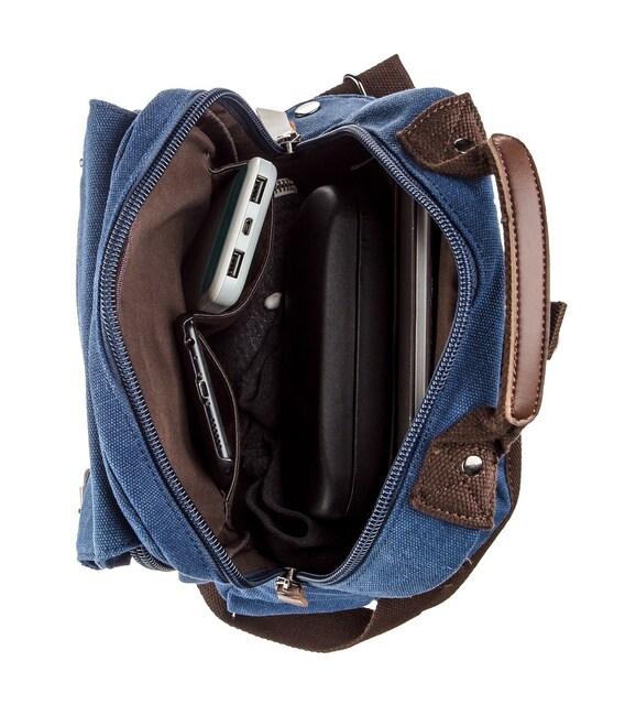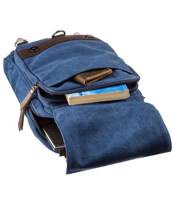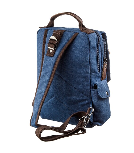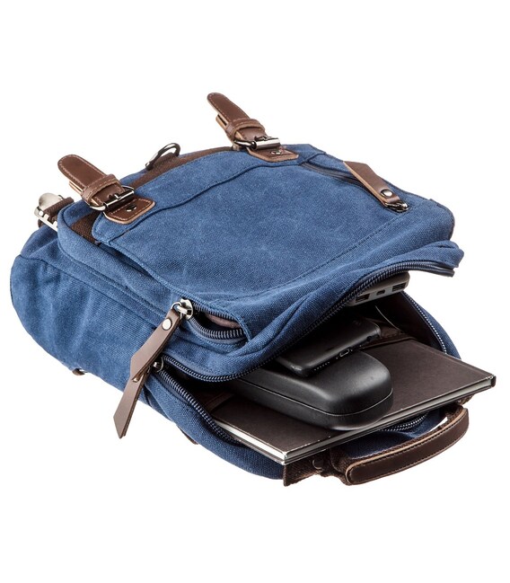 Описание Мужская сумка рюкзак на одно плечо для документов и города Vintage 20139 Синяя