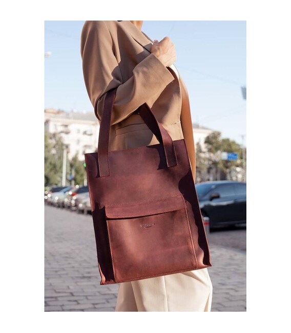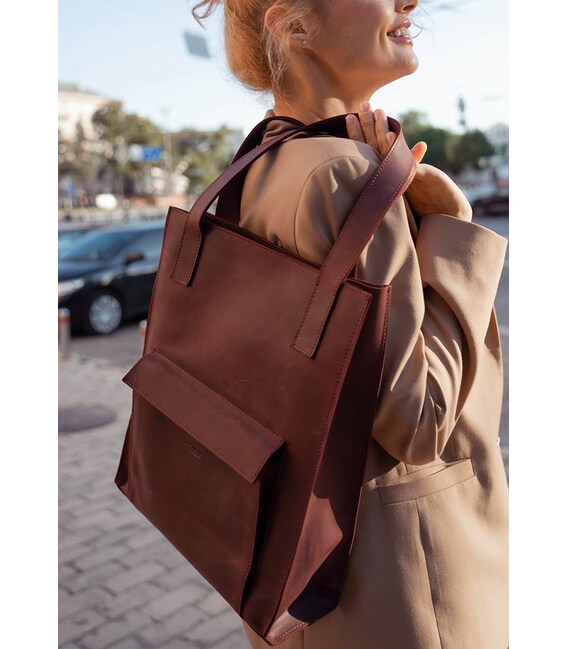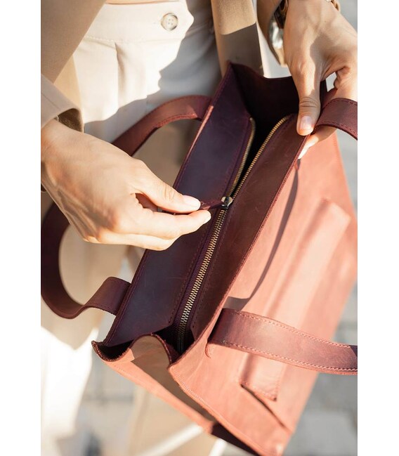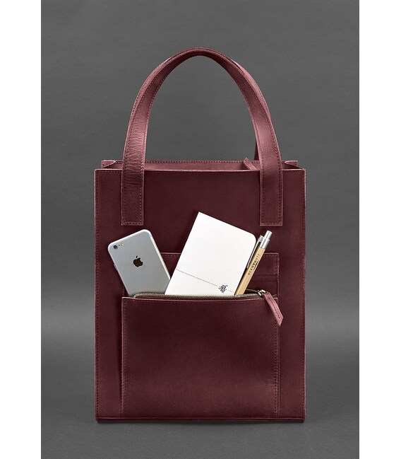 Описание Кожаная женская сумка шоппер Бэтси с карманом бордовая