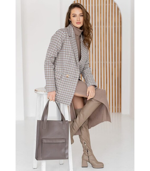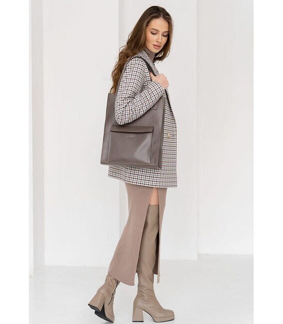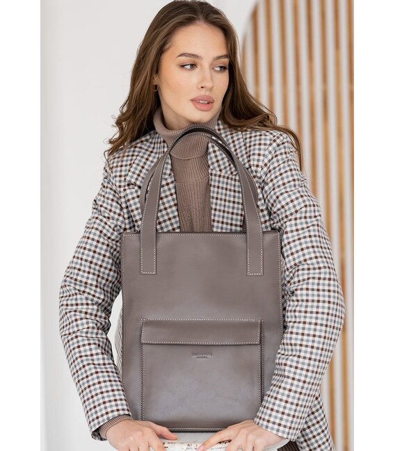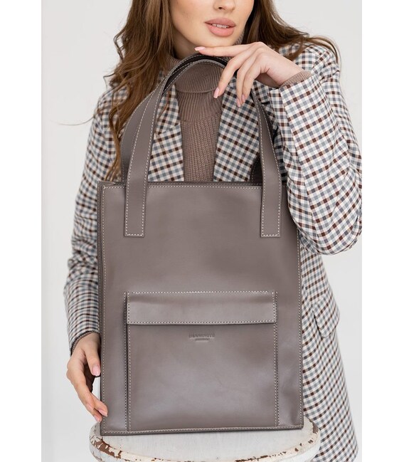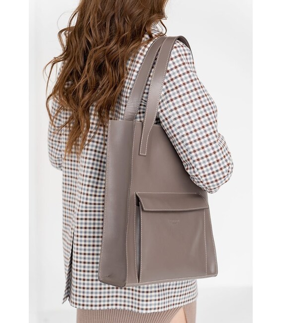 Описание Кожаная женская сумка шоппер Бэтси с карманом темно-бежевая Краст