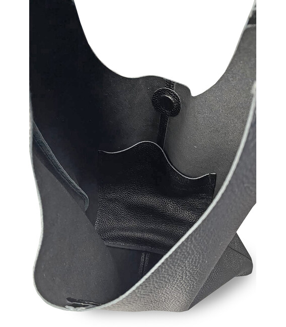 Описание Кожаная сумка шопер Nika черный зернистый