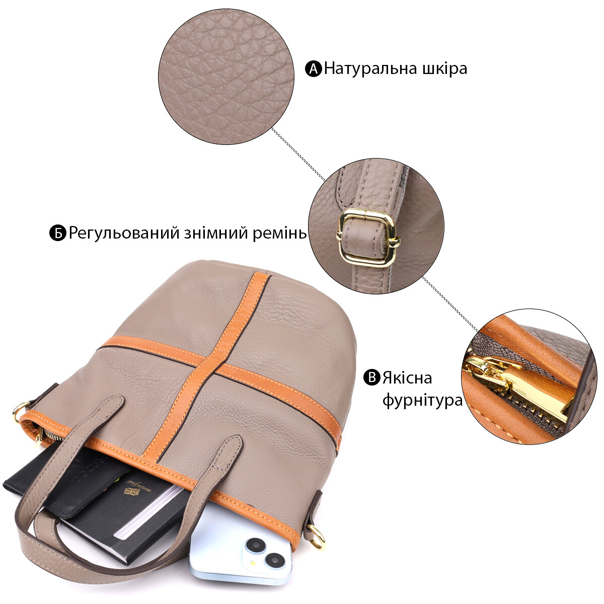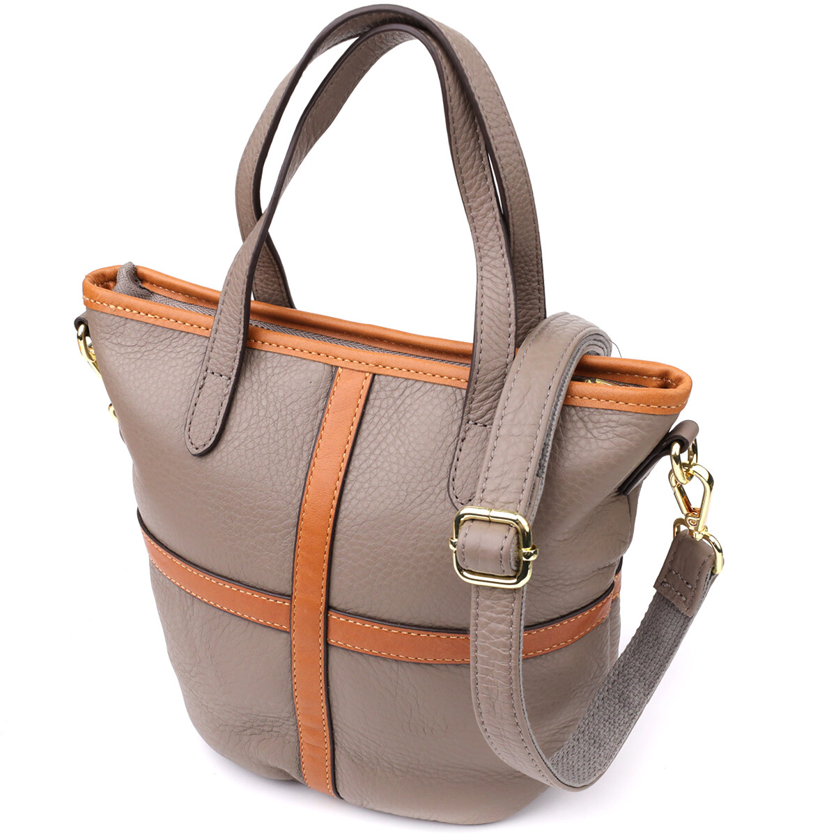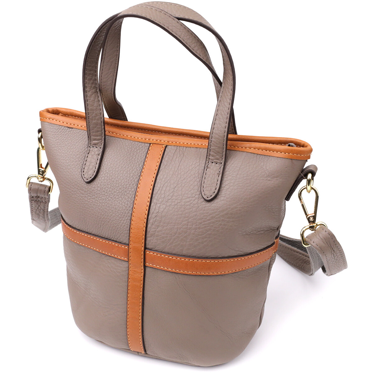 Серая кожаная сумка в виде трапеции — идеальный выбор для женщин, которые ценят сдержанный шик, качество и продуманный дизайн.
