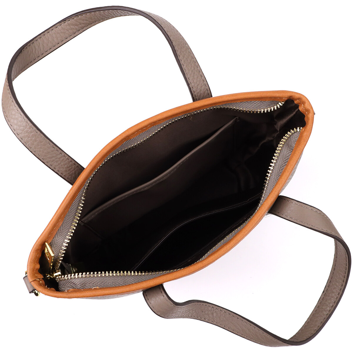 Сумка имеет одно основное отделение, которое закрывается на молнию, обеспечивая надежную защиту содержимого. Внутри расположены два кармана: потайной на молнии — для хранения ценных мелочей, и открытый — для предметов, к которым нужен быстрый доступ.