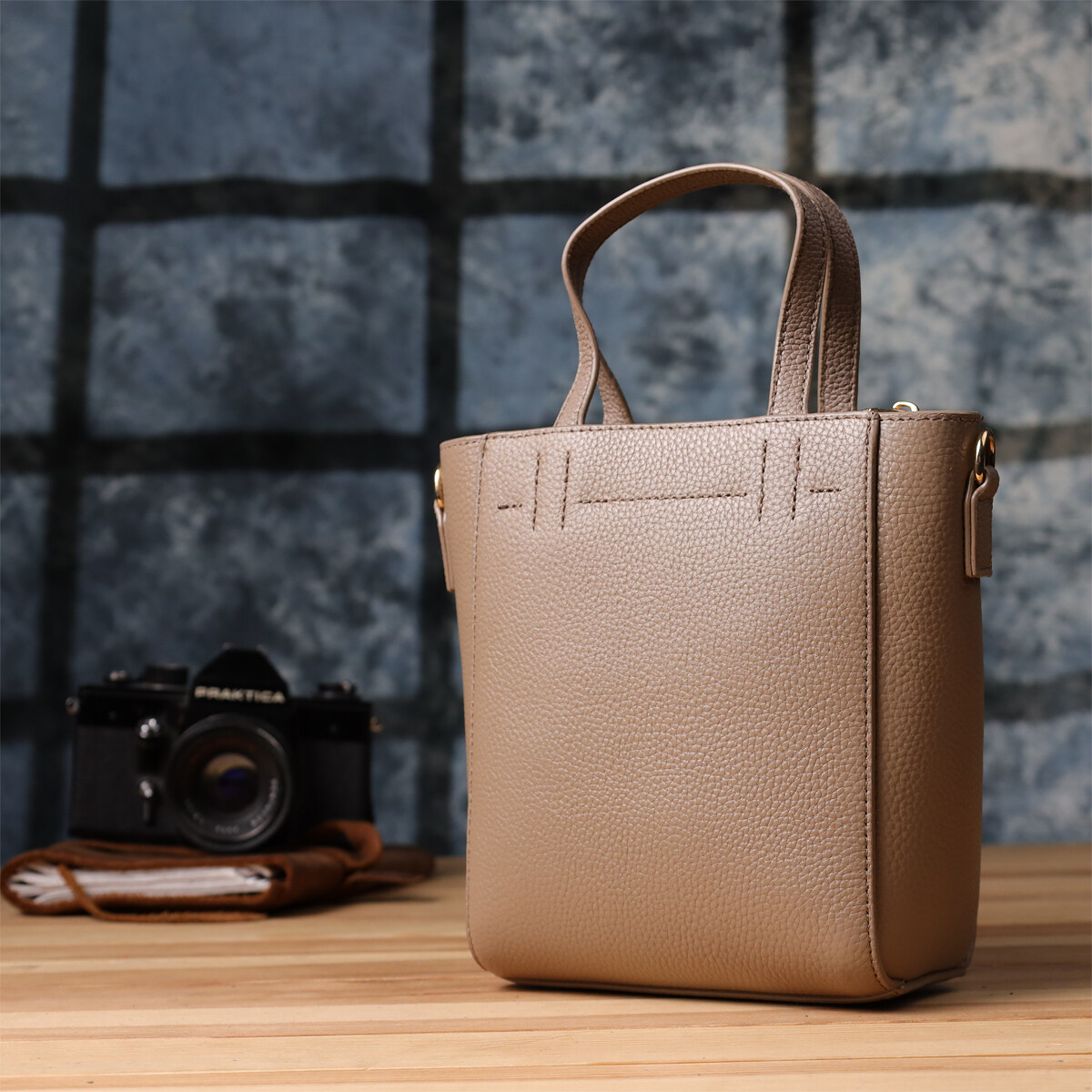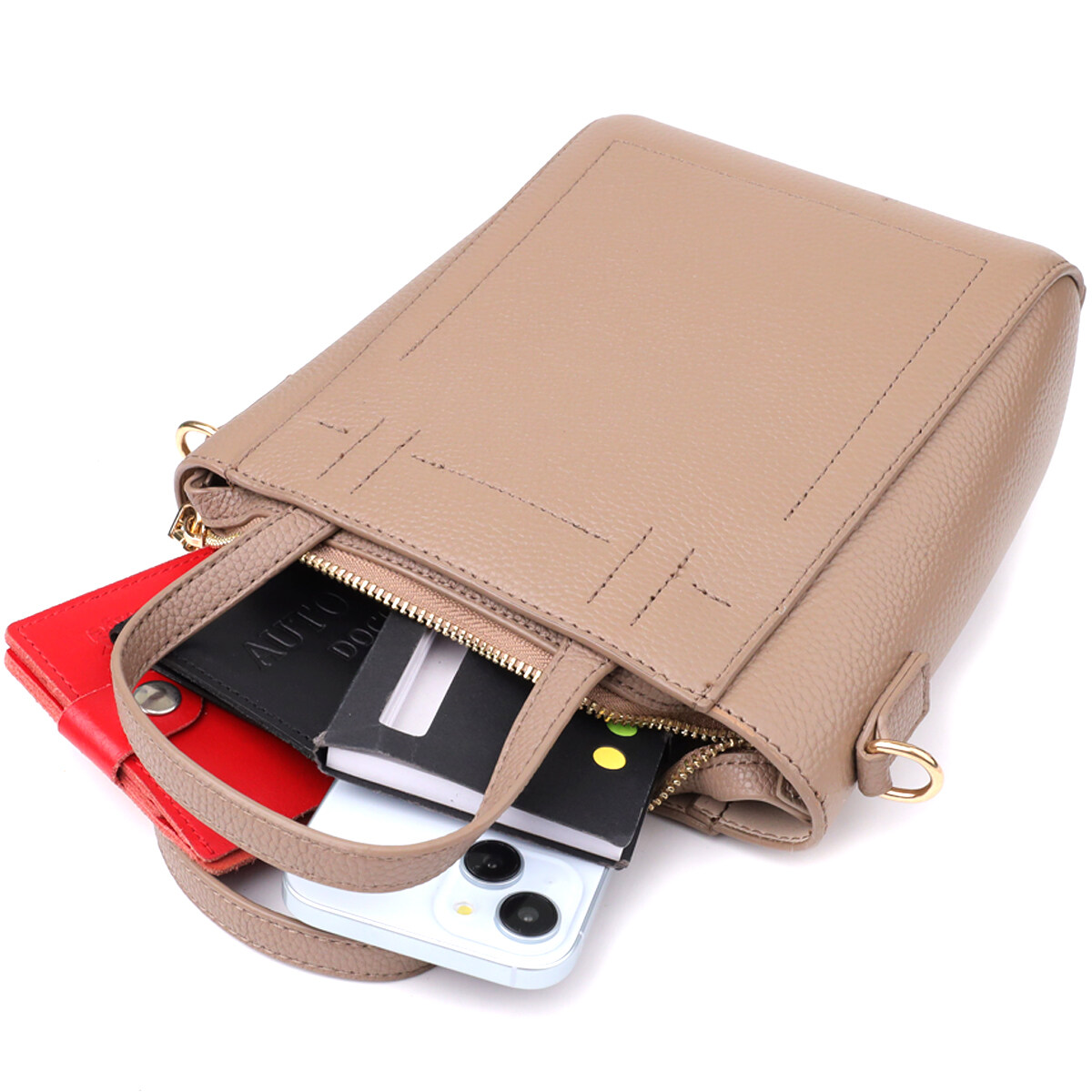 Благодаря своему нейтральному цвету и лаконичному дизайну, эта бежевая кожаная сумка легко впишется как в деловой, так и в повседневный гардероб.