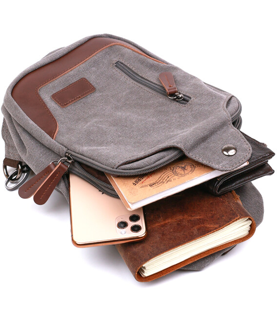 Описание Удобная мужская сумка через плечо Vintage 20388 Серый