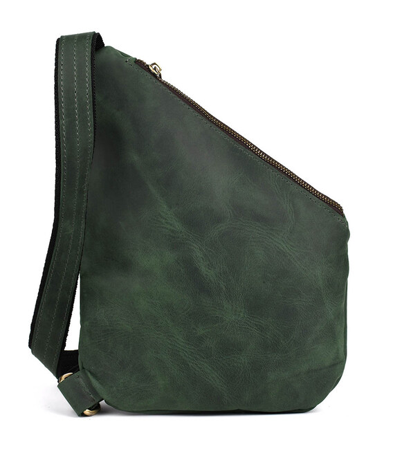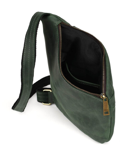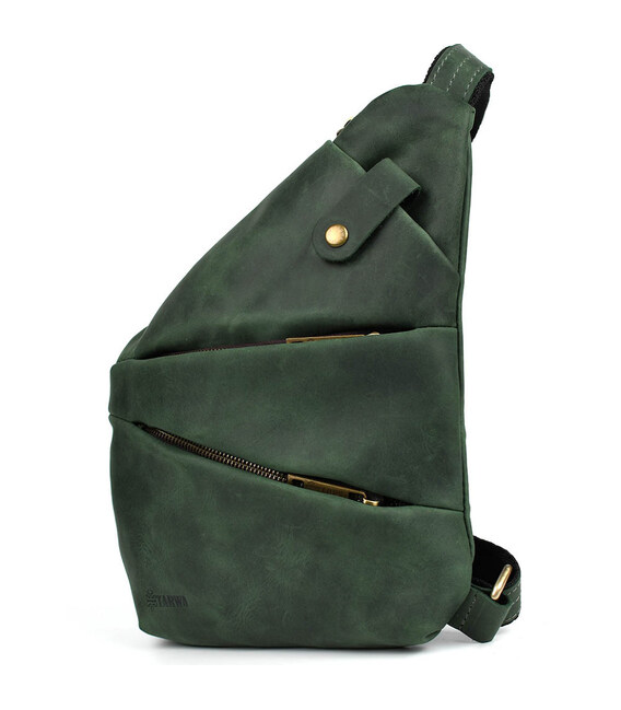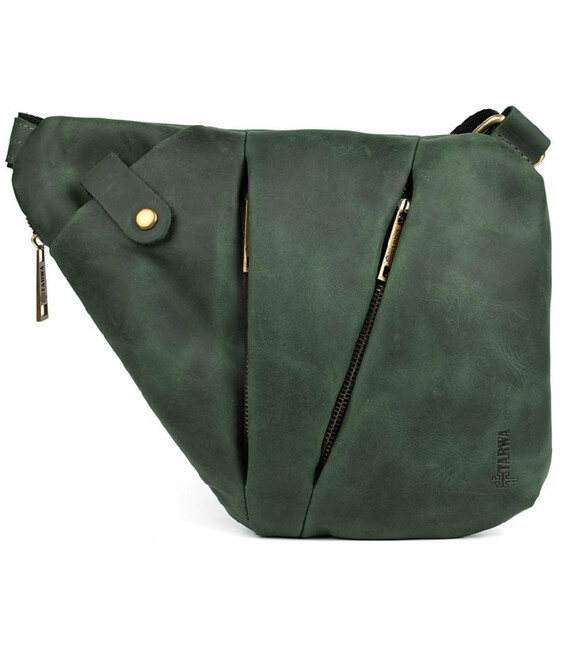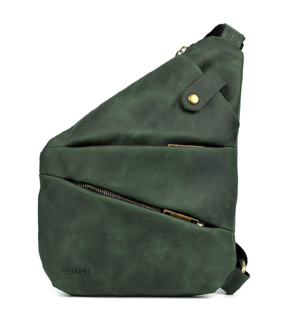 Чоловіча сумка слінг через плече TARWA RE-6402-3md крейзі хорс. Сумка-Косуха незвичайної трапецеподібної форми, та з максимальною функціональністю при носінні. Буде корисна у поїздках та подорожах. Нагрудна сумка 6402 із кінської шкіри зеленого кольору вигідно підкреслить ваш стиль. Сумка слінг практична, довговічна та вкрай зручна, регулювання ременя по довжині, кишеня для телефону на магніті, три кишені для речей. Металева фурнітура, тканинна підкладка, всередині кишеня