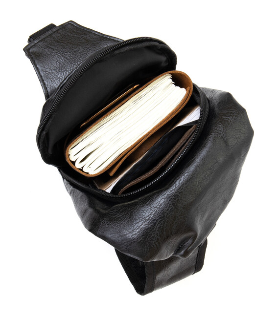 Изделие выполнено из качественного кожзаменителя черного цвета. Материал выглядит аккуратно и хорошо подходит для ежедневного использования. Вертикальный формат делает сумку удобной для размещения личных вещей, документов и других необходимых мелочей.