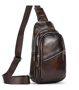 Мужская сумка-слинг очень практичная и удобная. Ее можно носить и на плече, и через плечо. При этом регулируемый ремень не давит и не трет. Два раздельных отделения застегиваются молниями и отличаются вместительностью. Для удобства в мужской кожаной сумке предусмотрены два кармана: спереди и на спинке. Поскольку они не большие, то в них можно положить ключи, кошелек, очки или документы, и они всегда будет под рукой. Гладкая кожа, из которой выполнена модель, является износостойкой, поэтому и не стирается при носке.