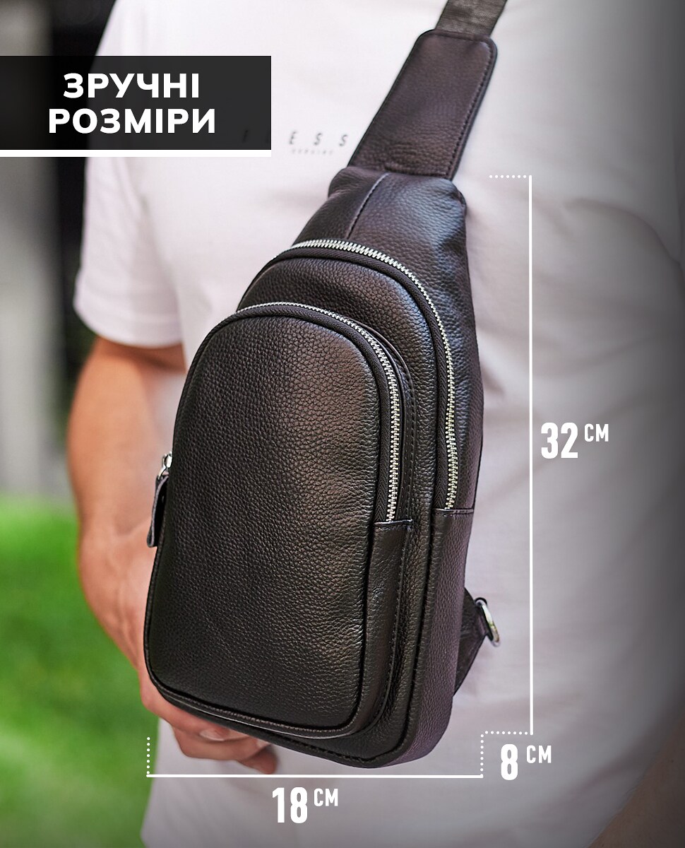 Слинг кожаный мужской на плечо черный TIDING BAG TH-73583